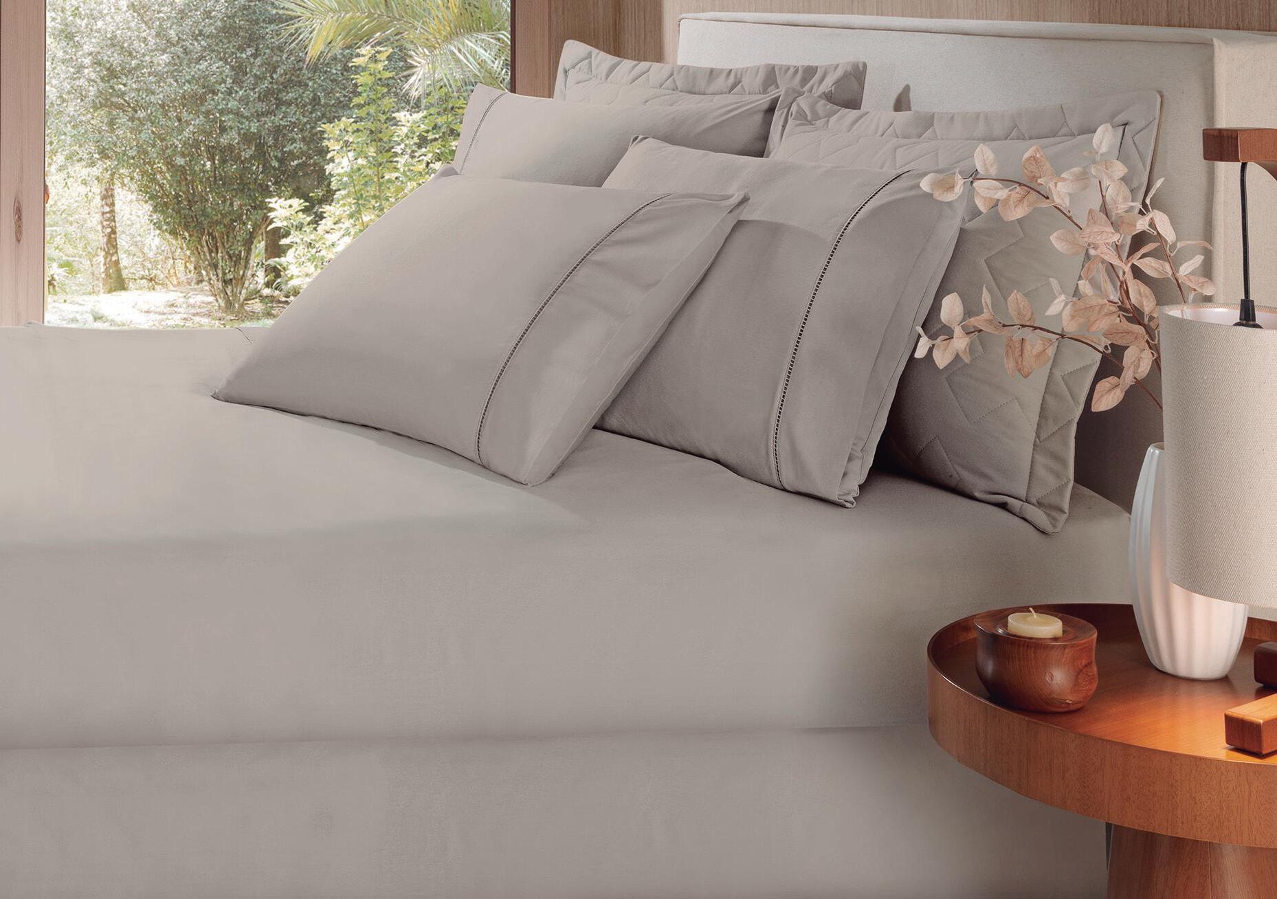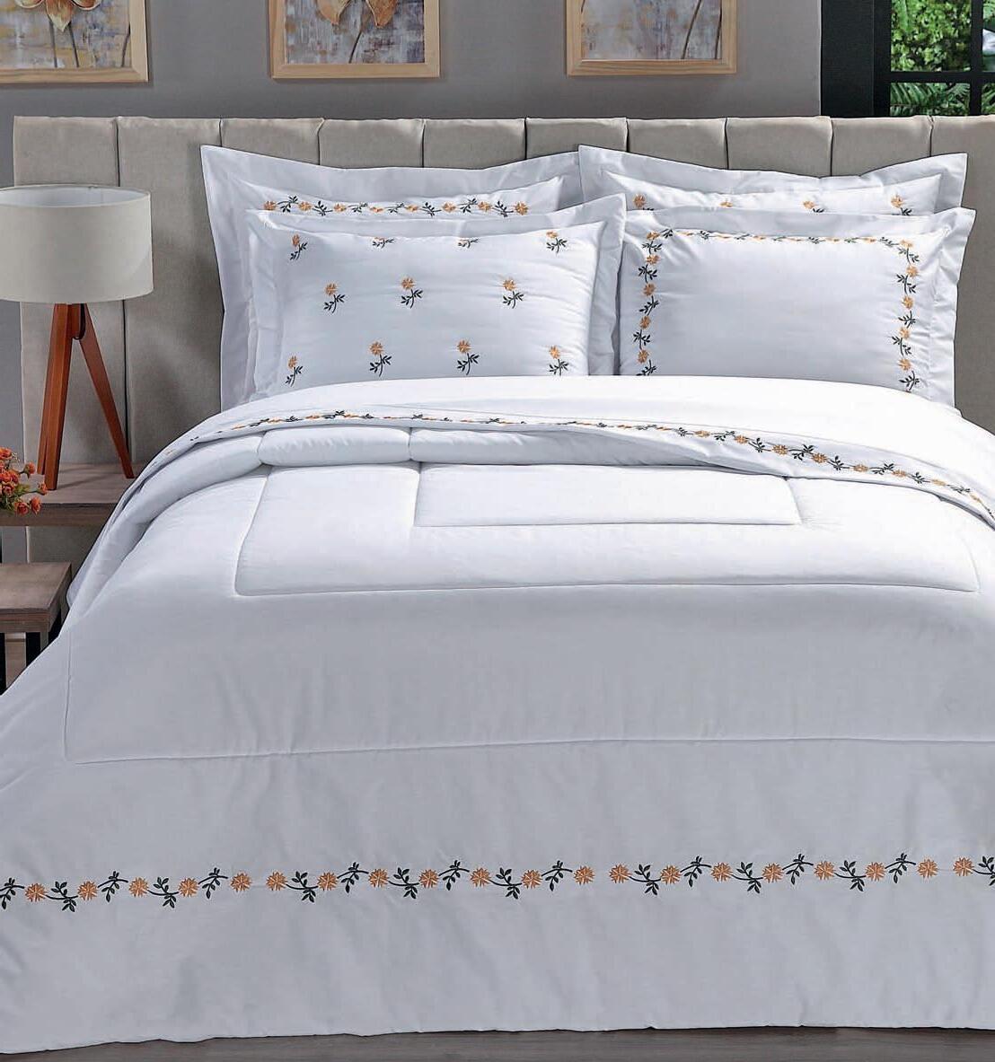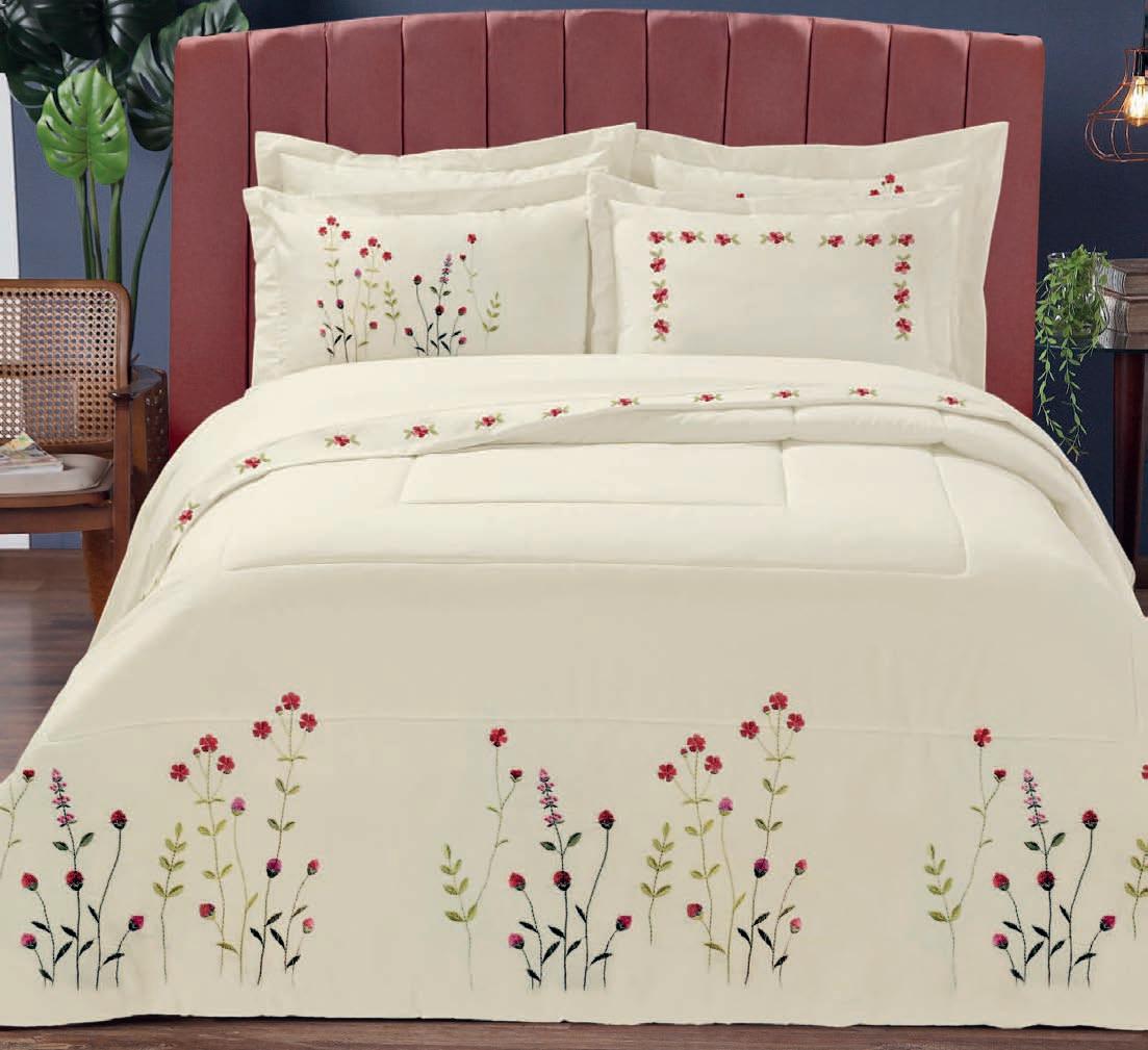 1 cobre-leito 2,40 x 2,80 m 2 porta-travesseiros 50 x 70 cm com abas