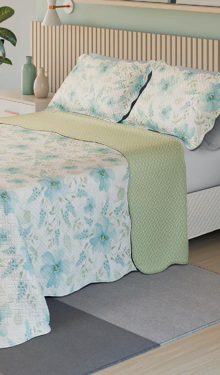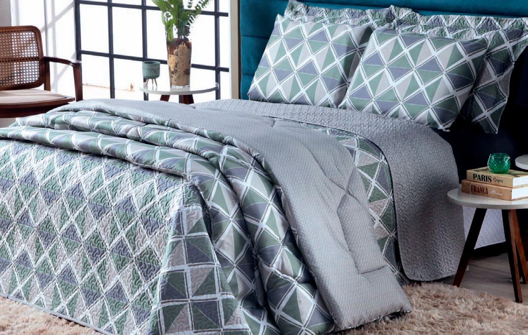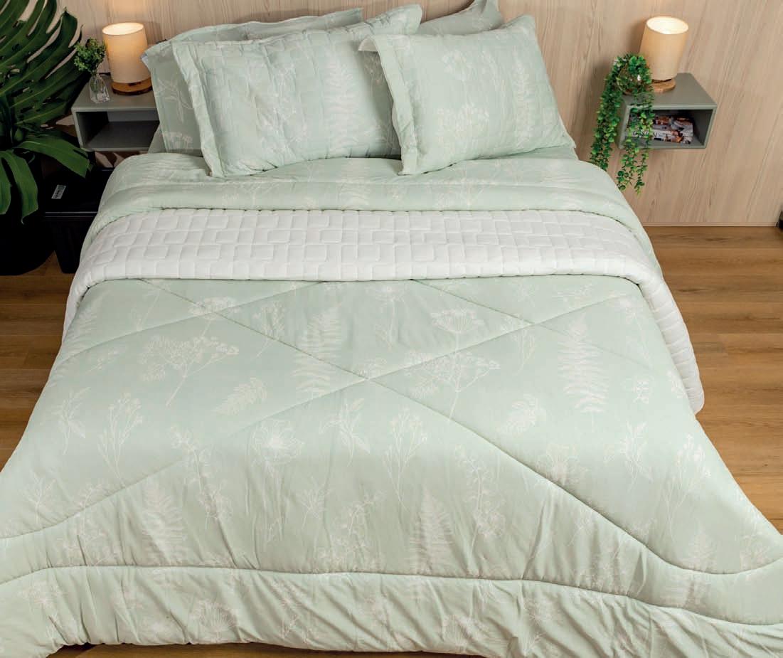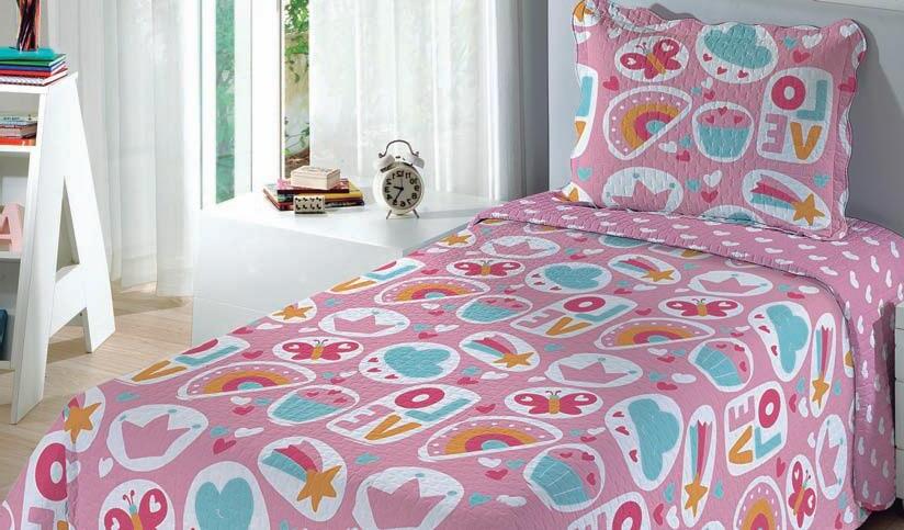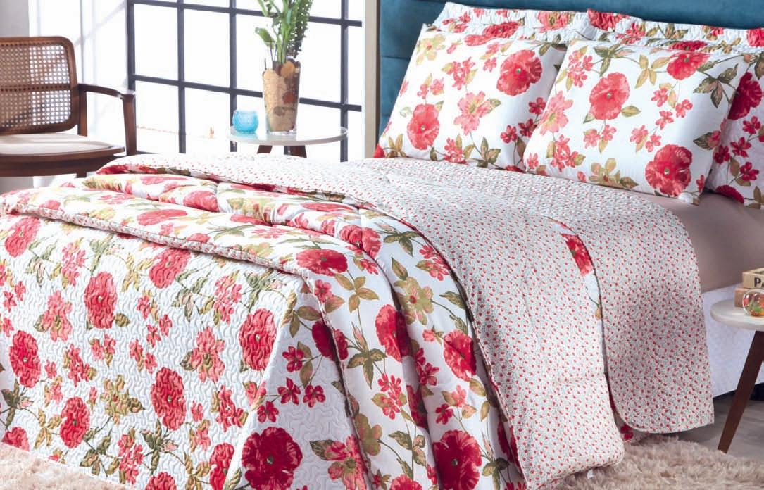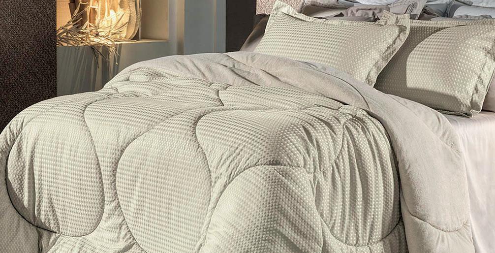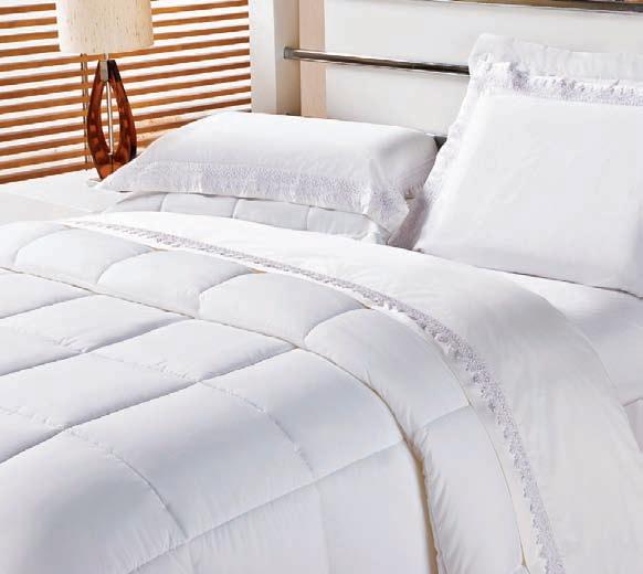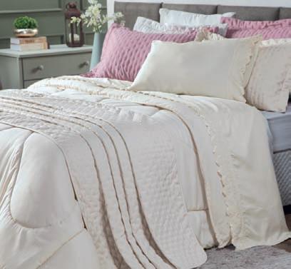 * Colchas e porta-travesseiros com matelassê ultrassônico no mesmo flannel do edredom.