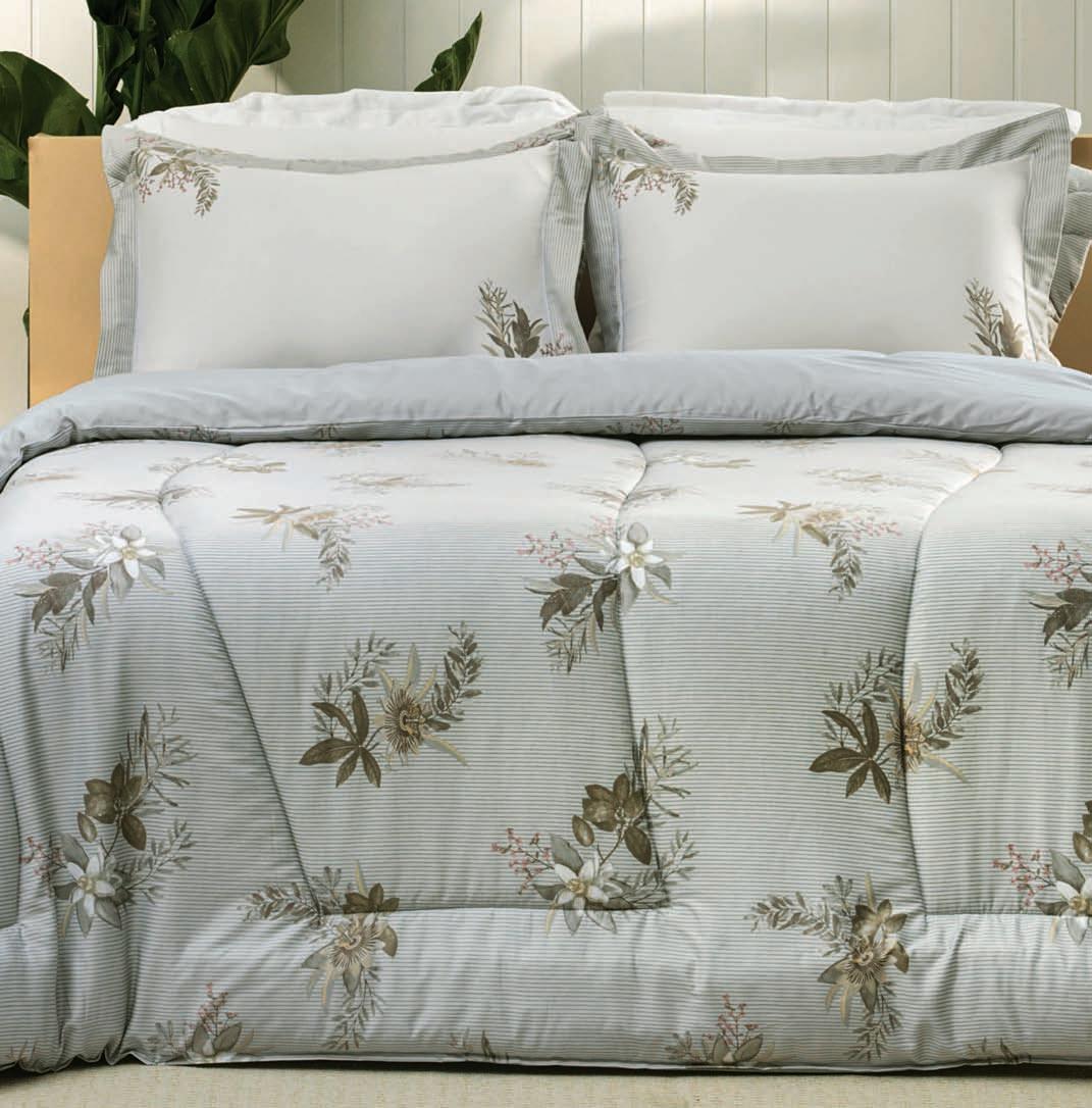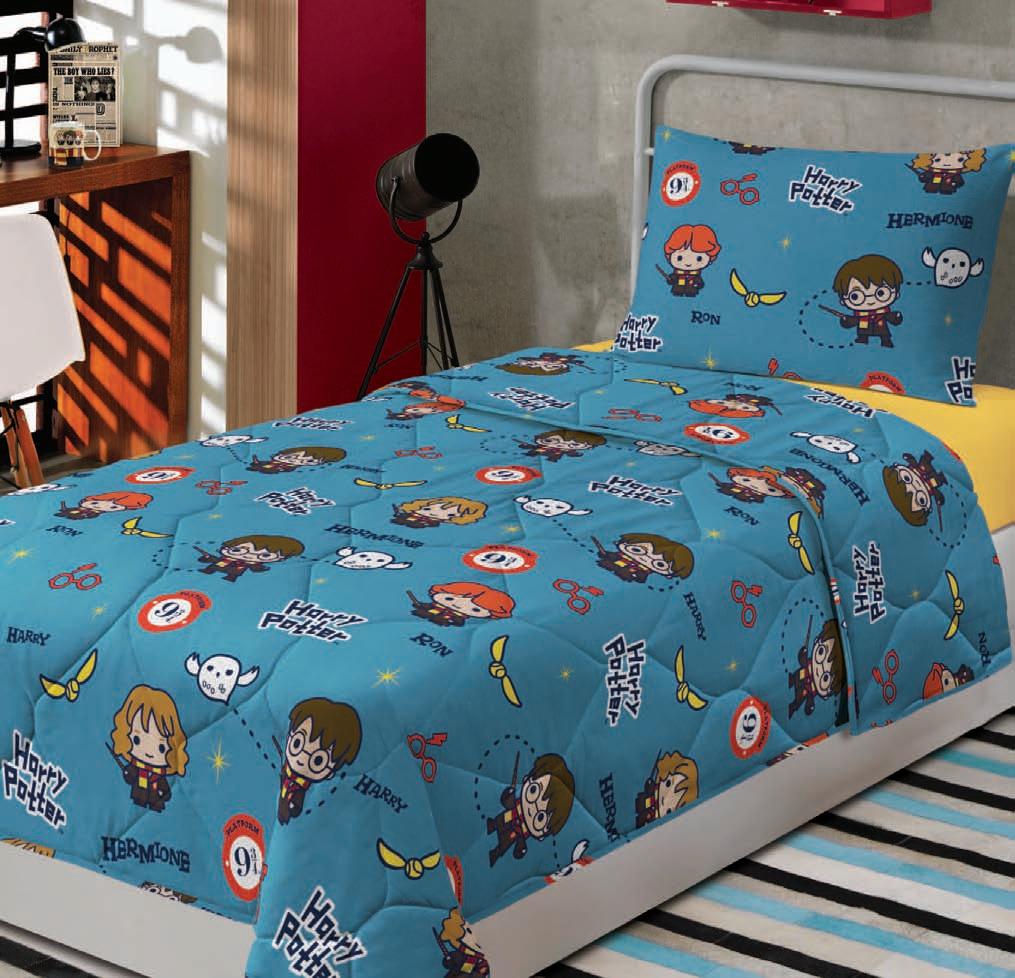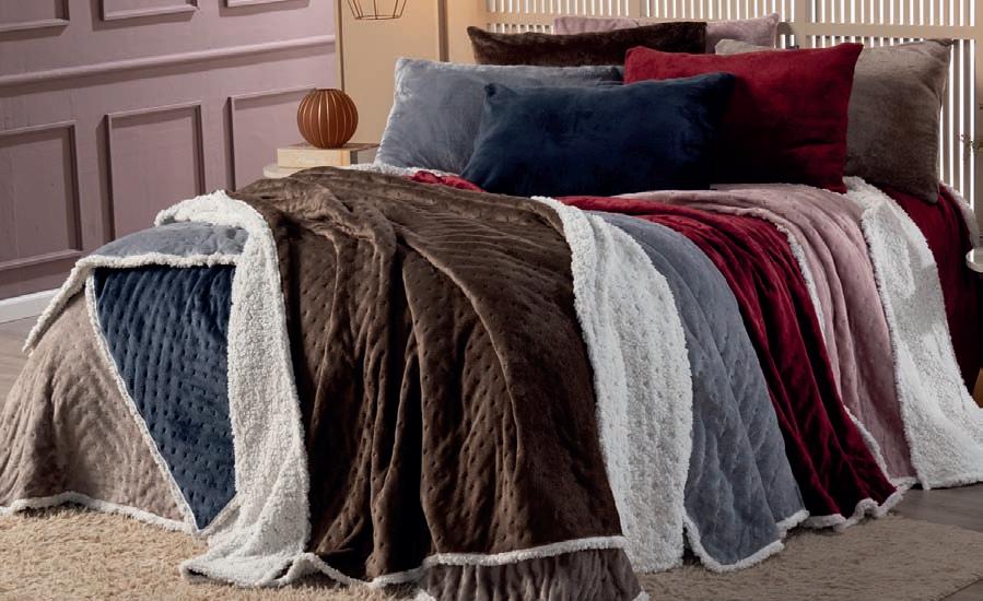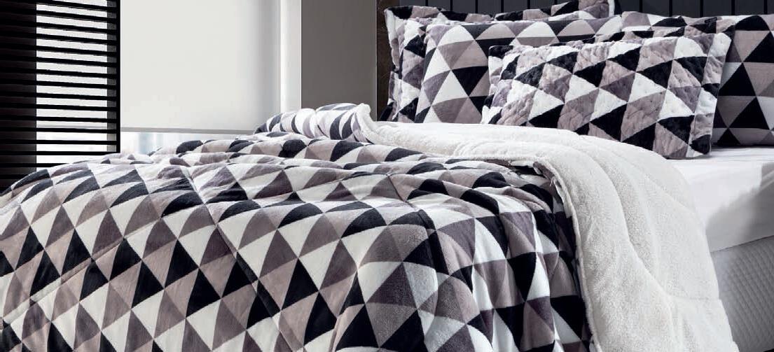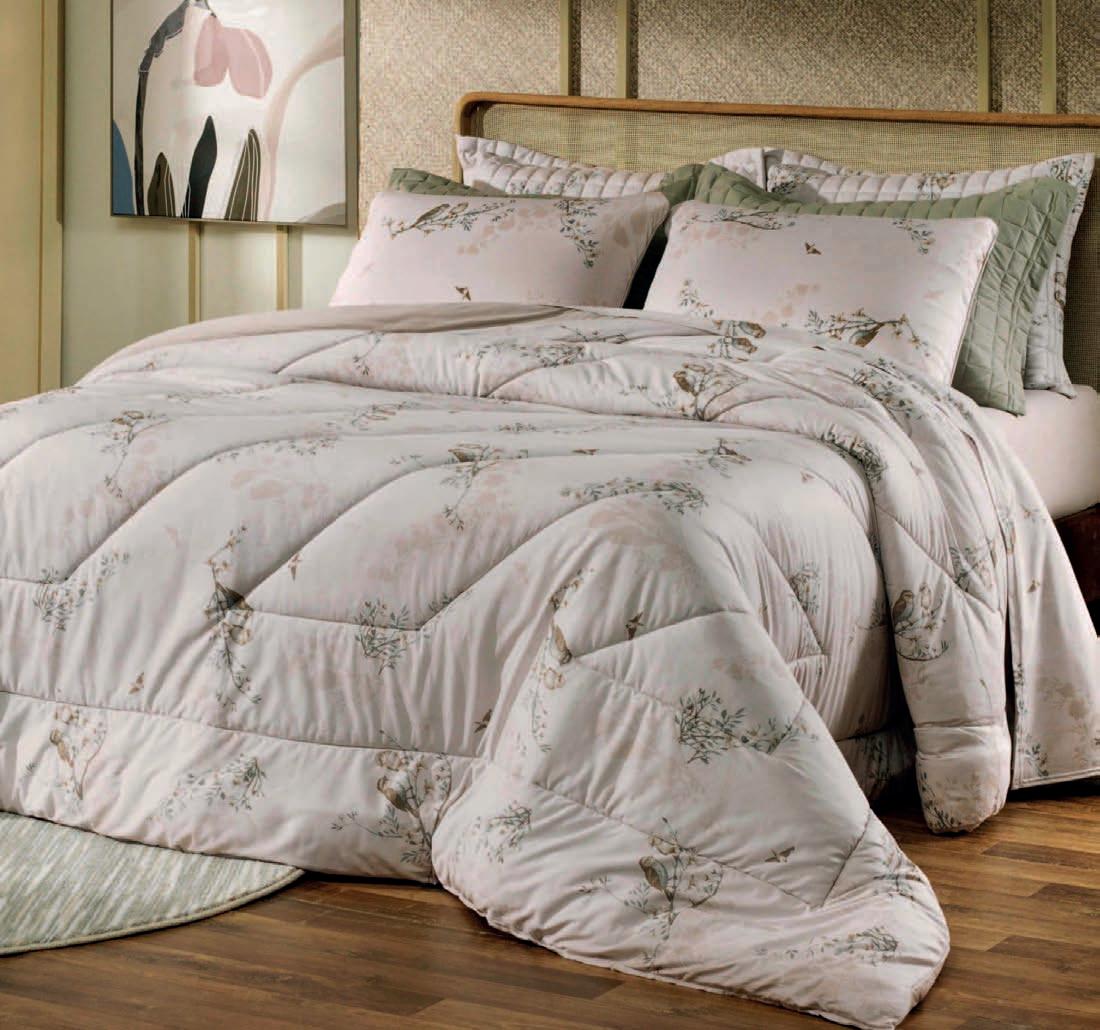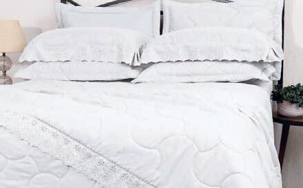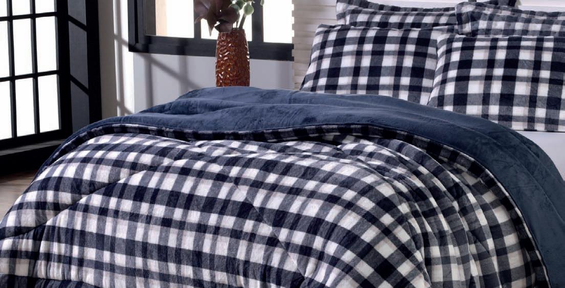 * Colchas e porta-travesseiros com matelassê ultrassônico no mesmo flannel do edredom.
