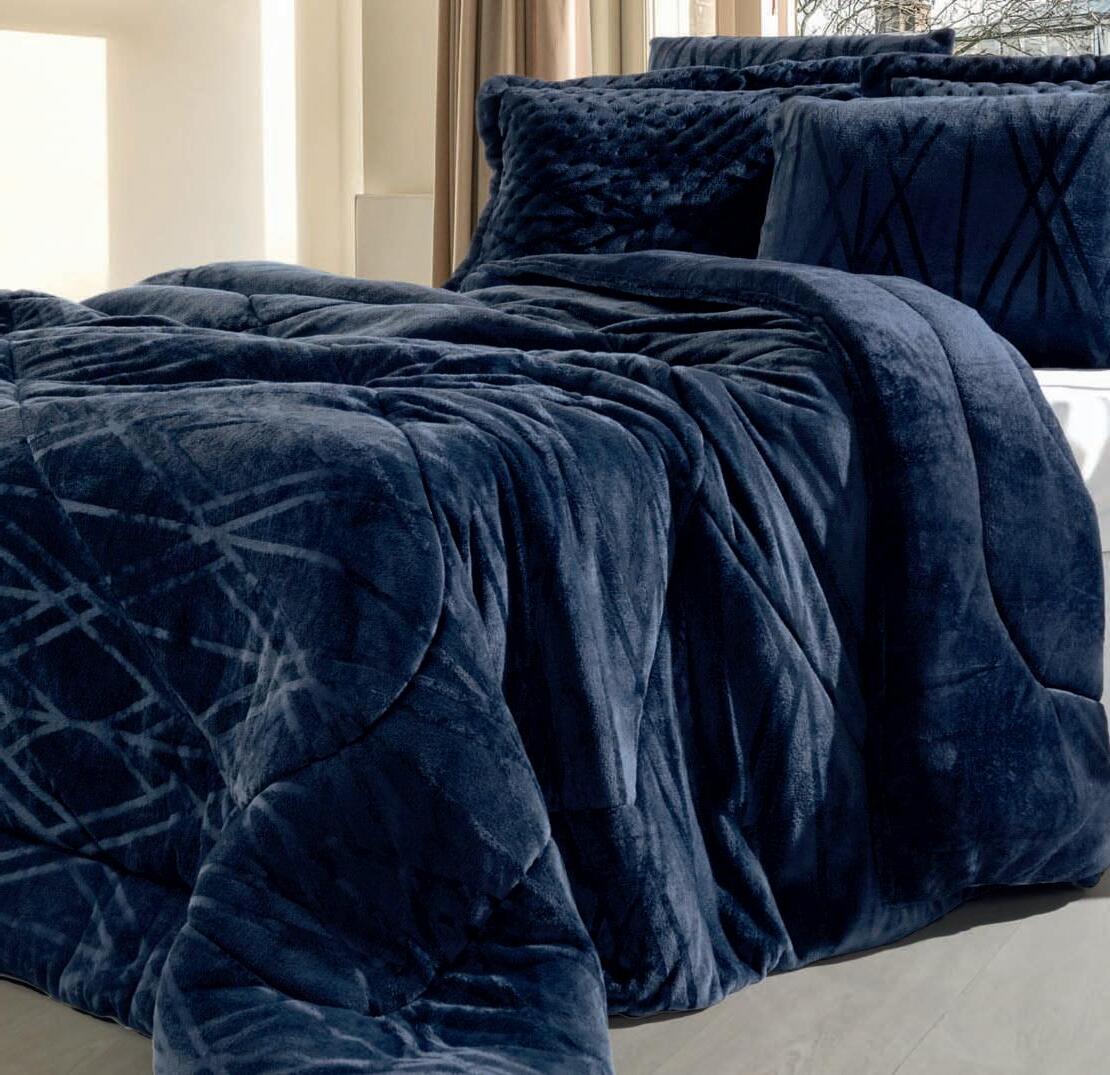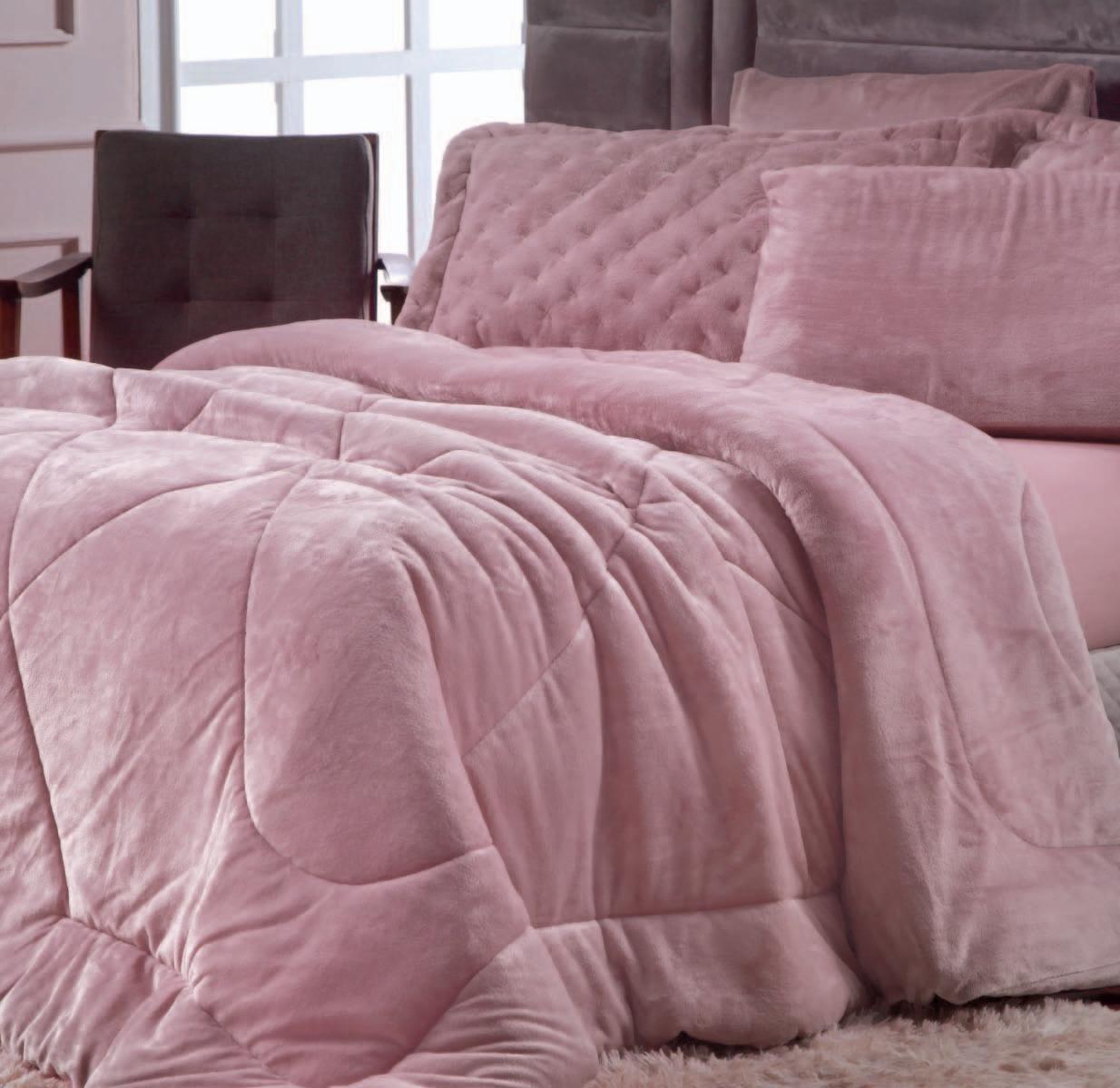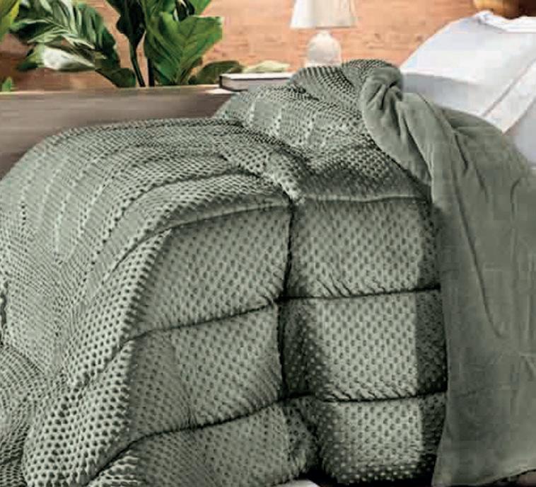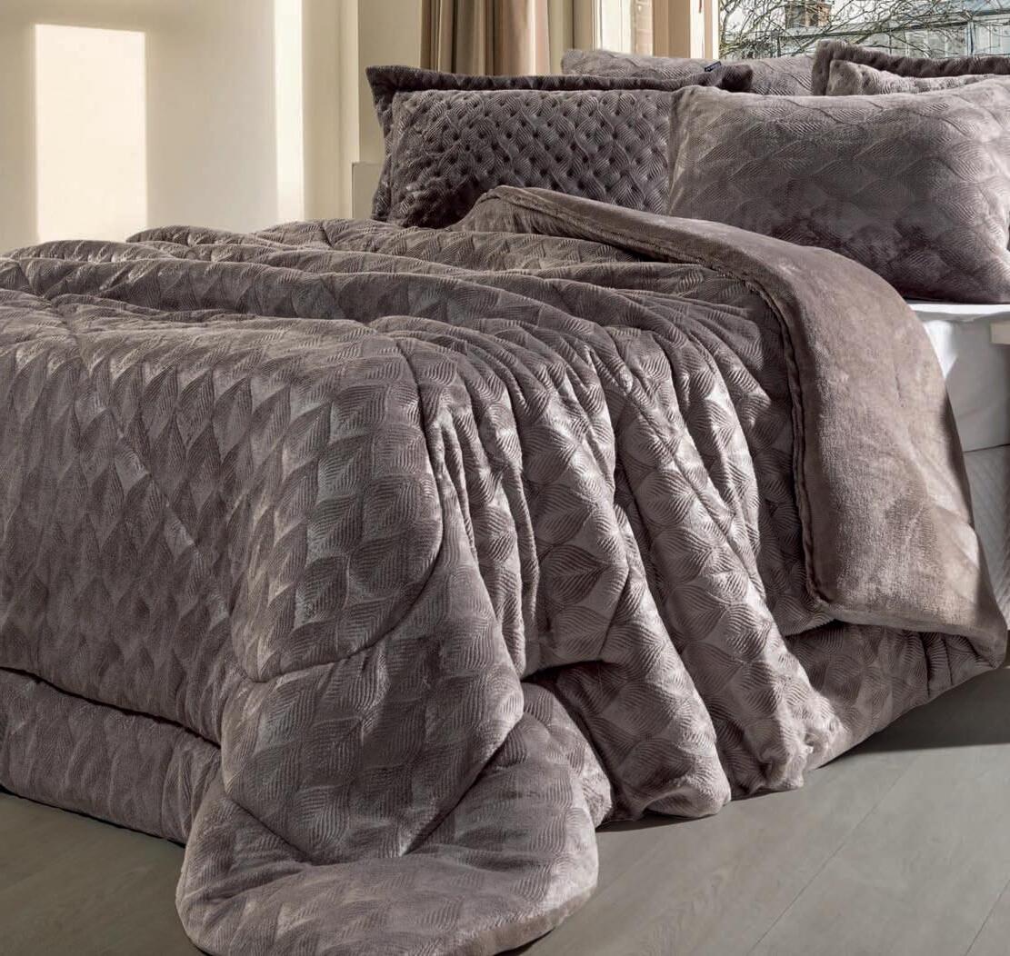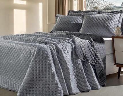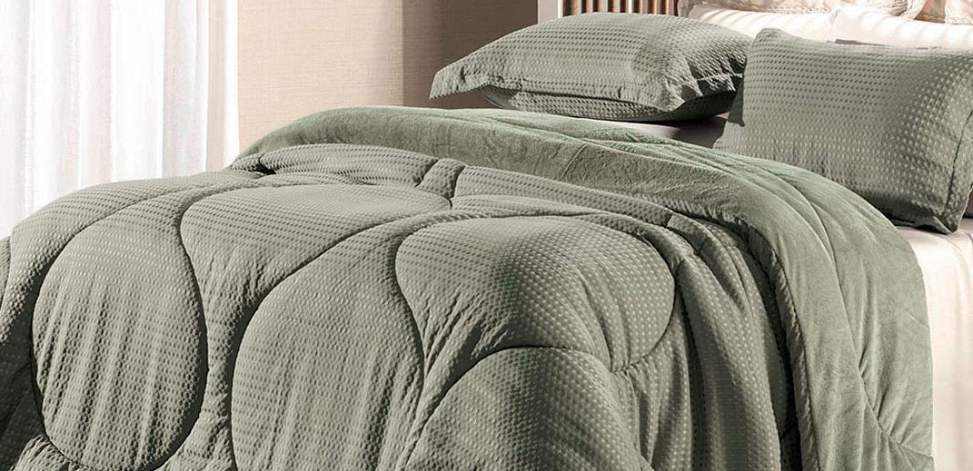 * Colchas e porta-travesseiros com matelassê ultrassônico no mesmo flannel do edredom.