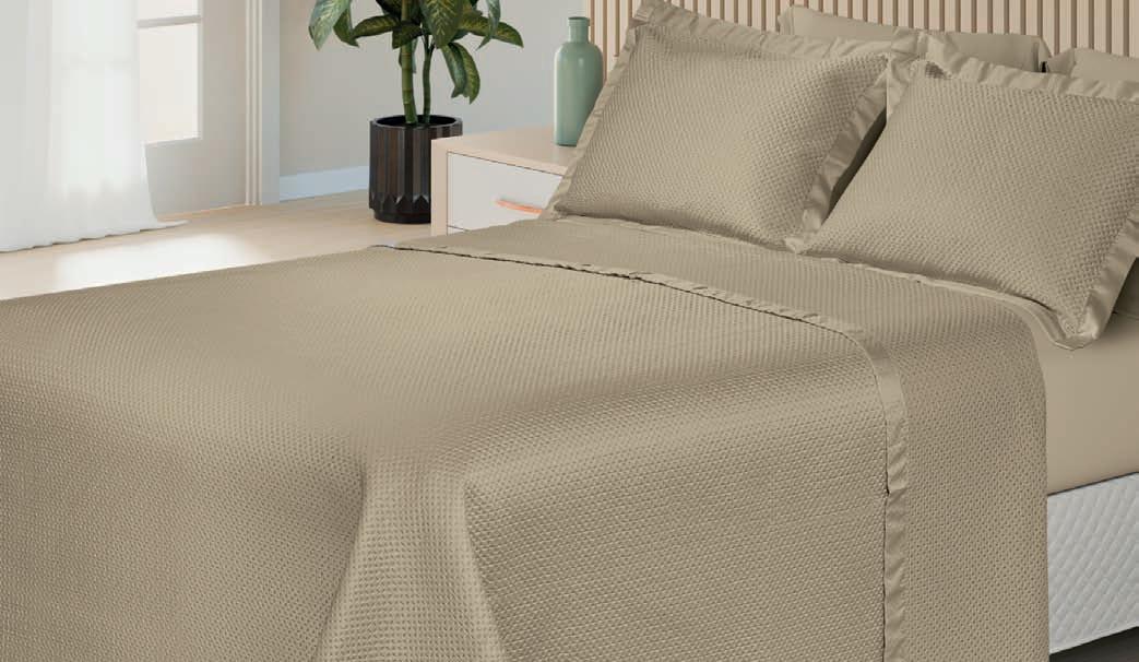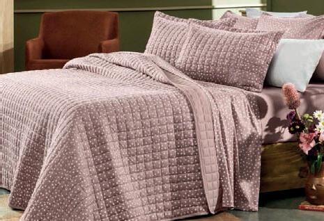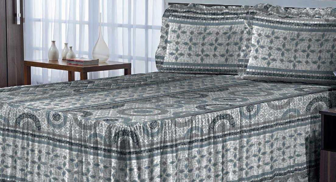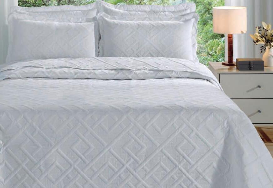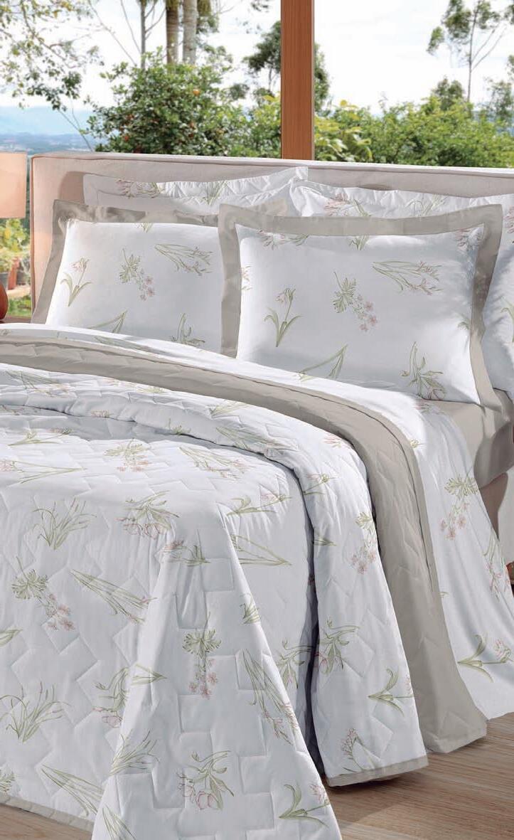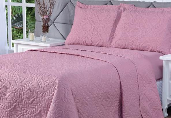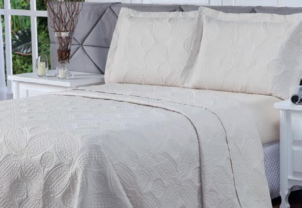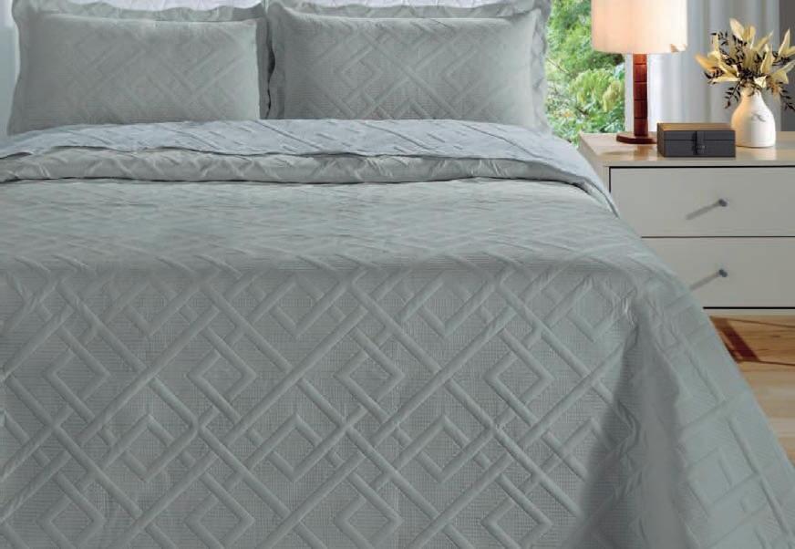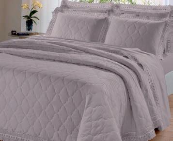 * Colchas e porta-travesseiros com matelassê ultrassônico. * Cobre-leito Ref.: Quadrilux é o mesmo plush utilisado no edredom. Cod. 61052 4 X 129,60