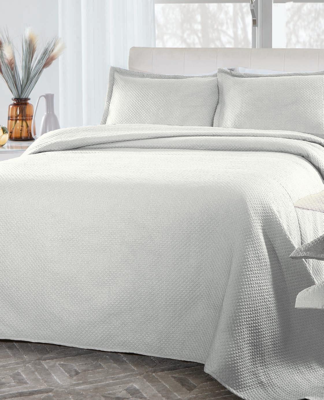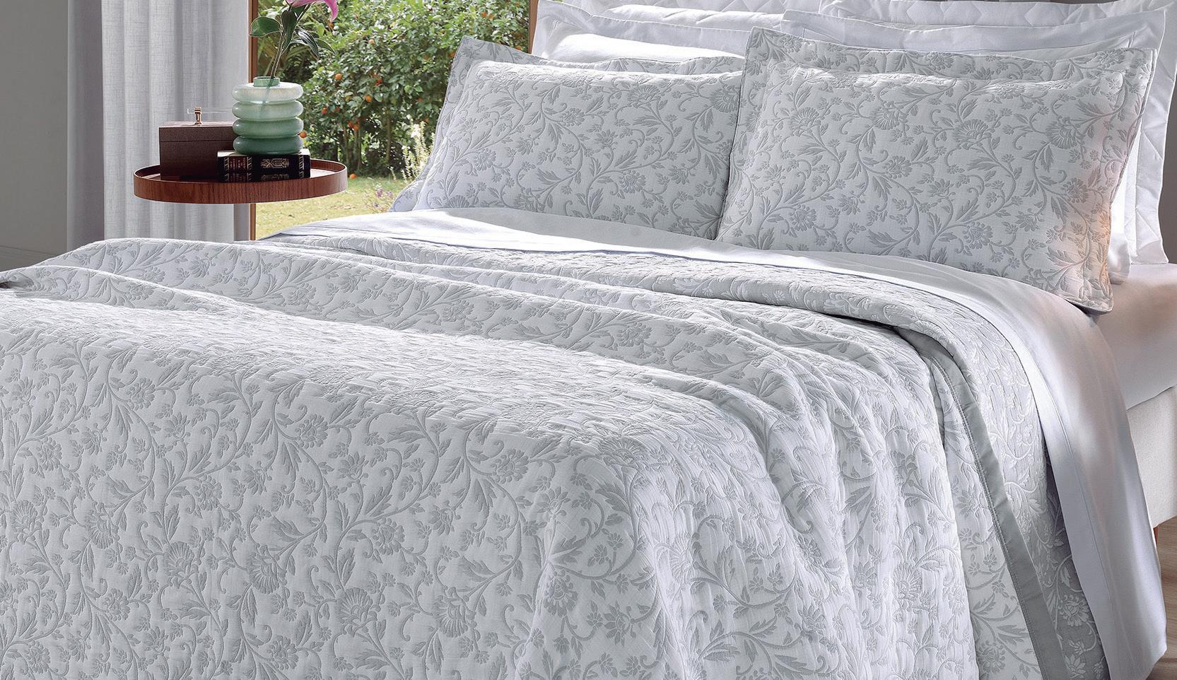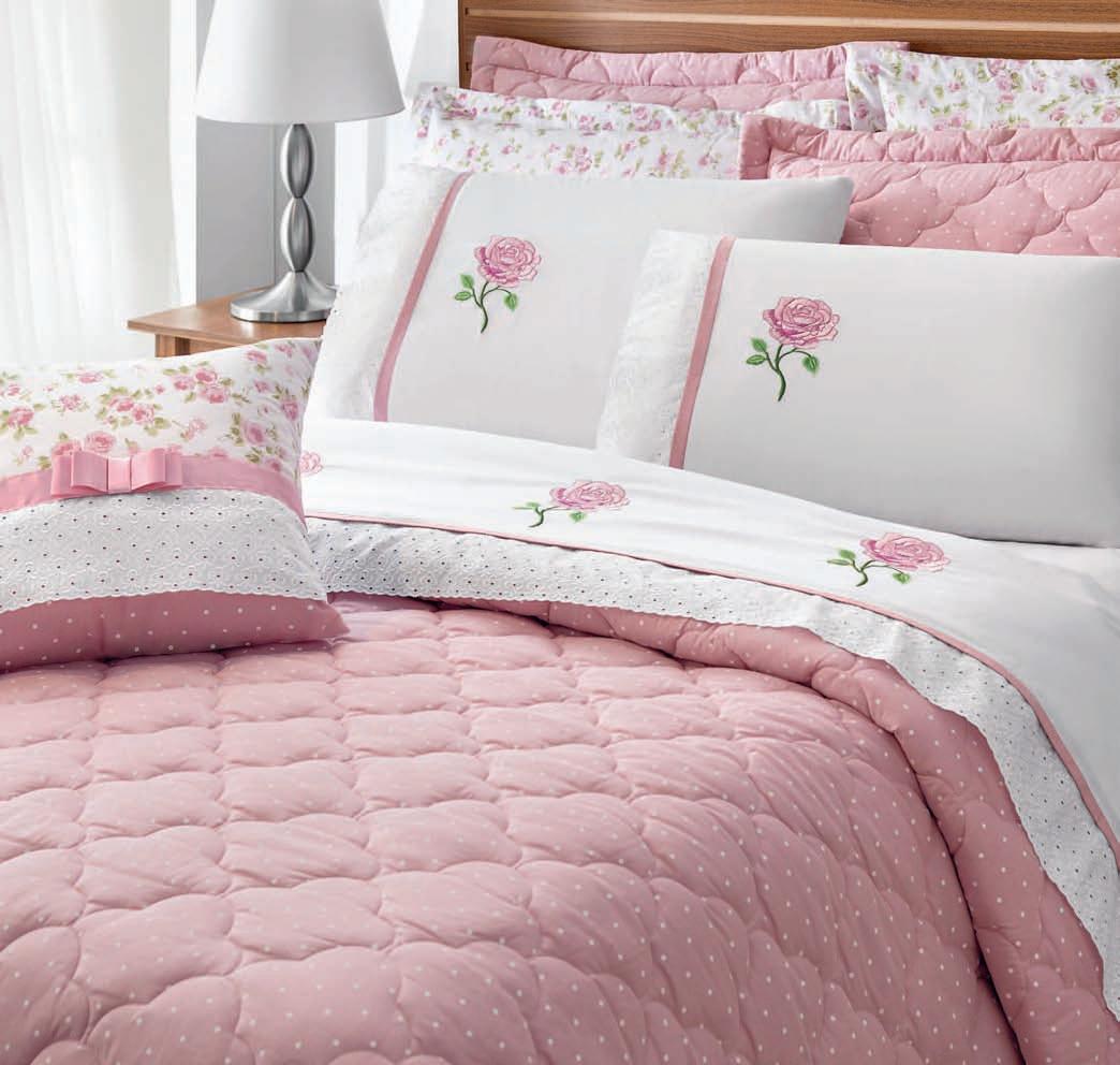 * Colchas e porta-travesseiros com matelassê ultrassônico. * Cobre-leito Ref.: Quadrilux é o mesmo plush utilisado no edredom. Cod. 61052 4 X 129,60