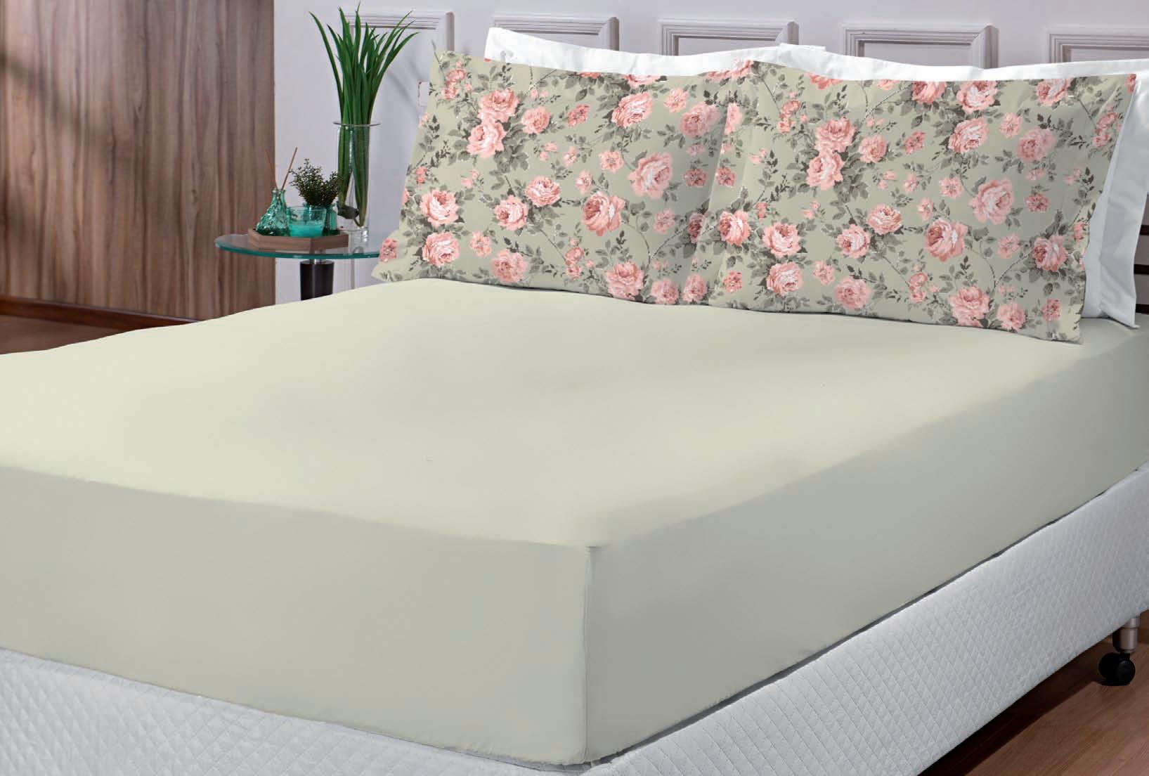 Jogo de lençol Casal 3 peças 1 de baixo 1,38 x 1,88 m + 30 cm de elástico 2 fronhas 50 x 70 cm
