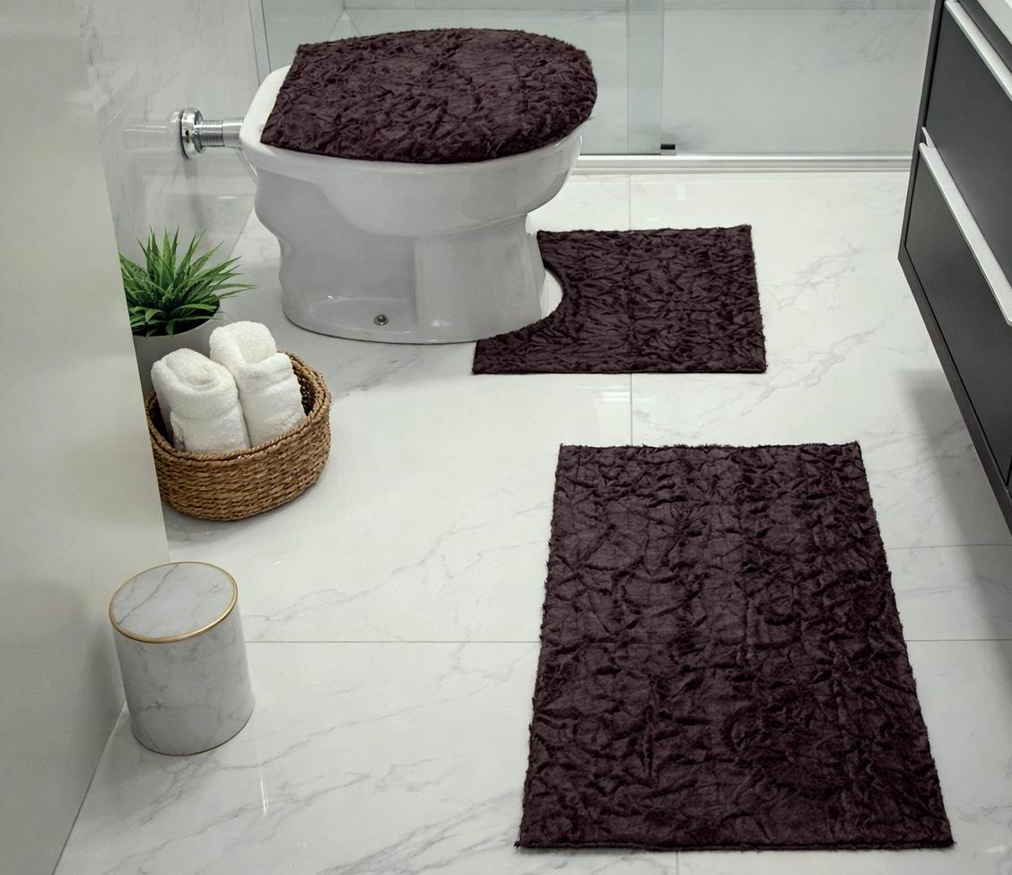 Jogo de banheiro 3 peças Em poliéster com base antiderrapante