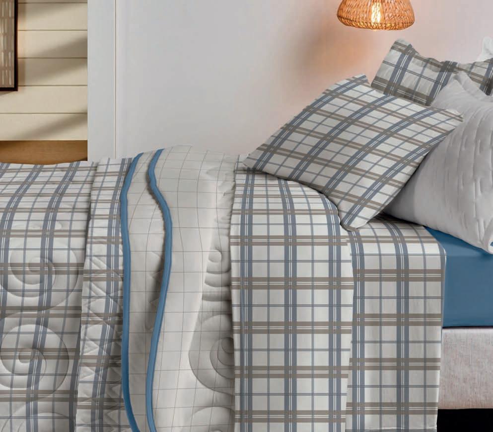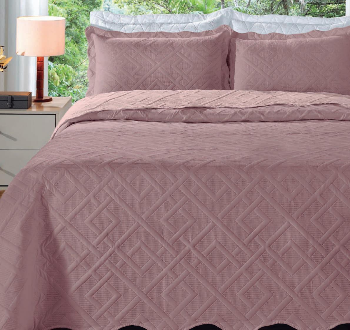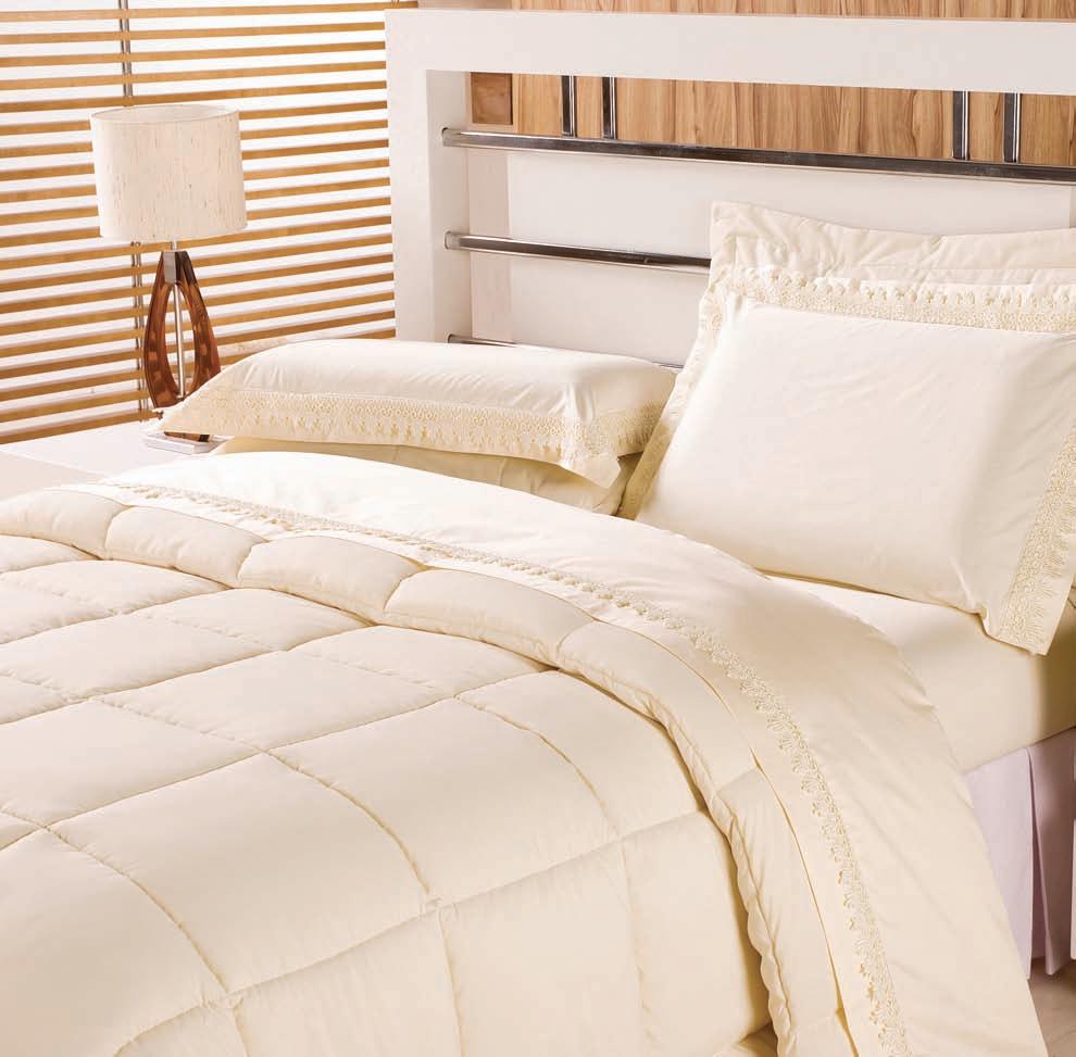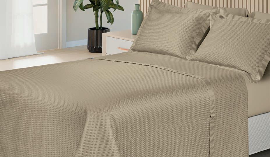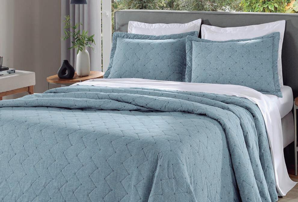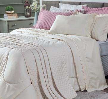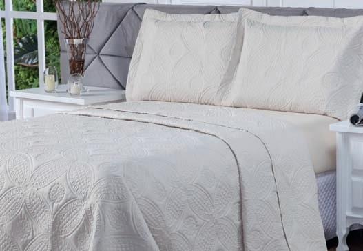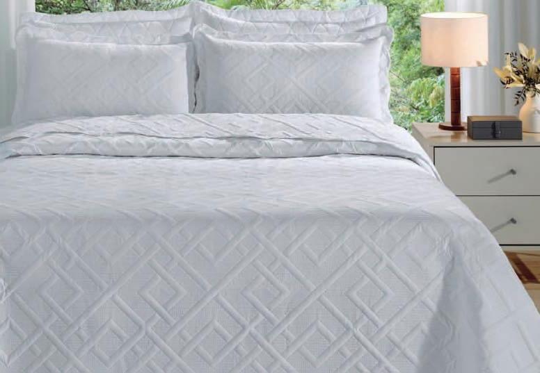 * Colchas e porta-travesseiros com matelassê ultrassônico.