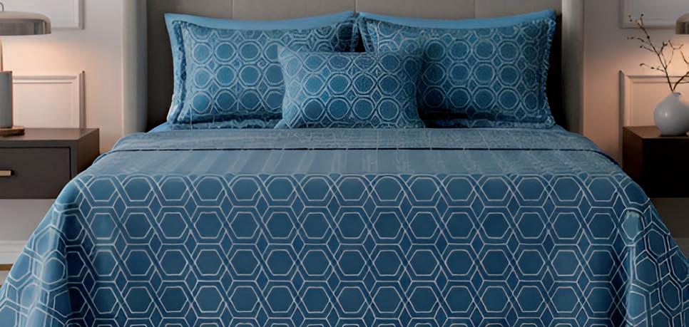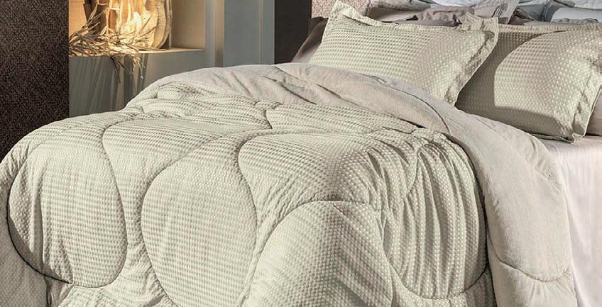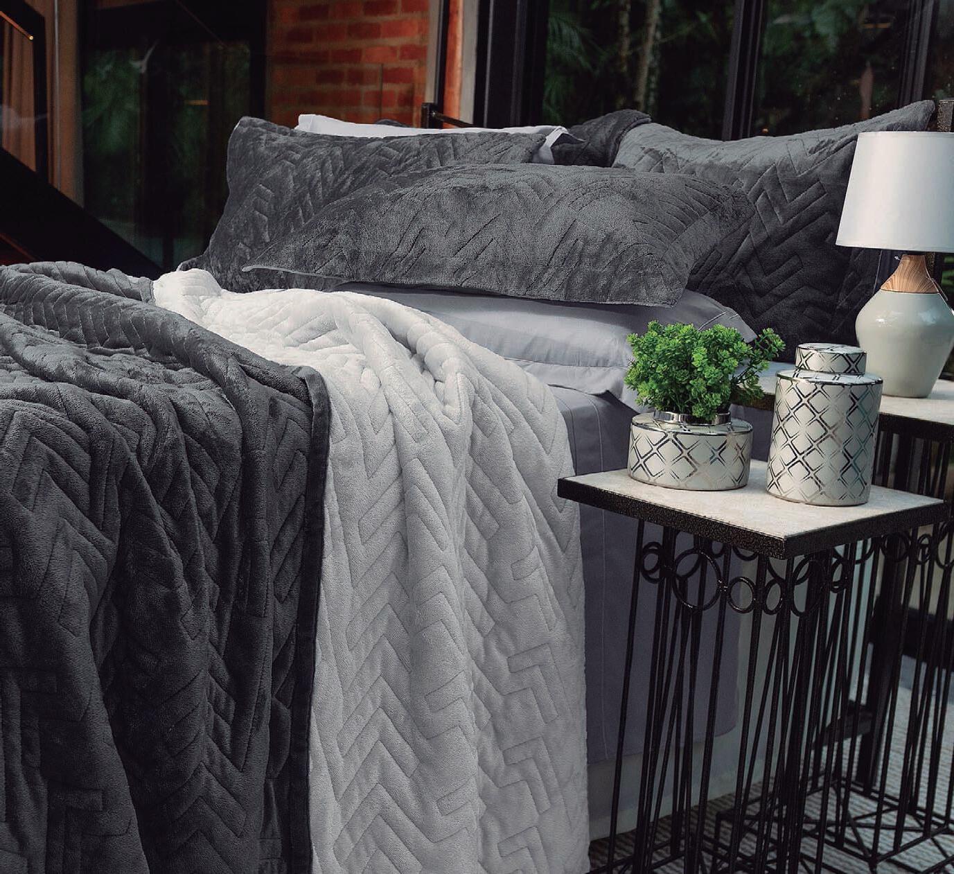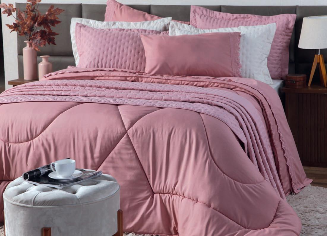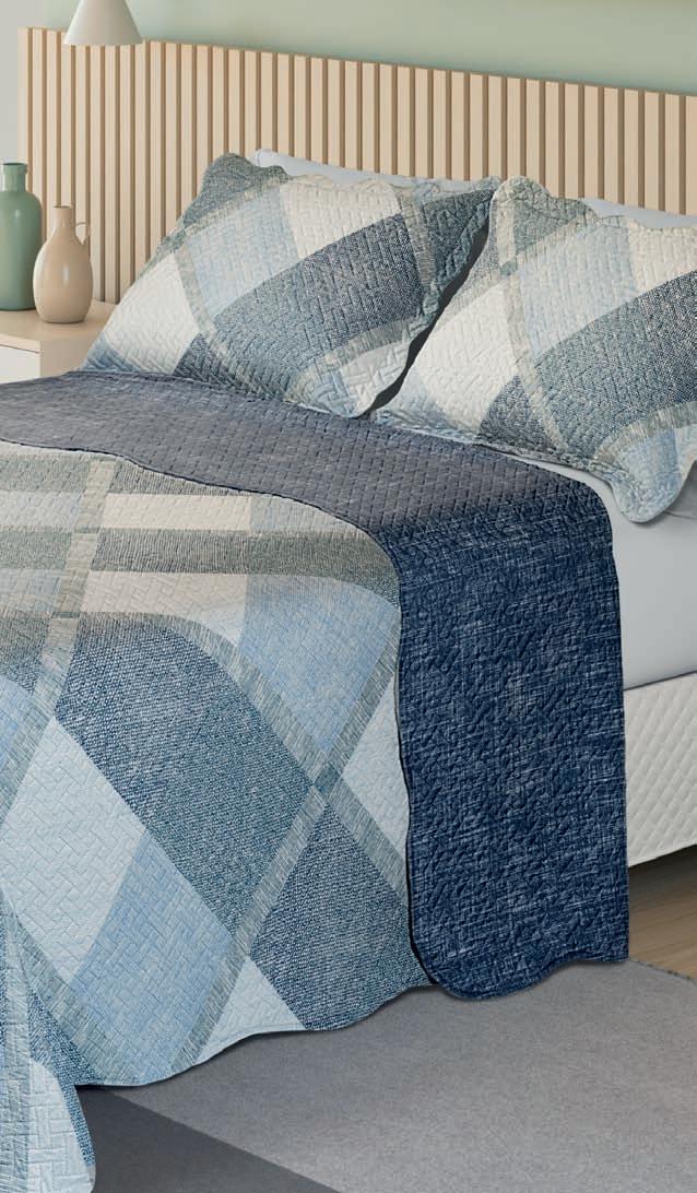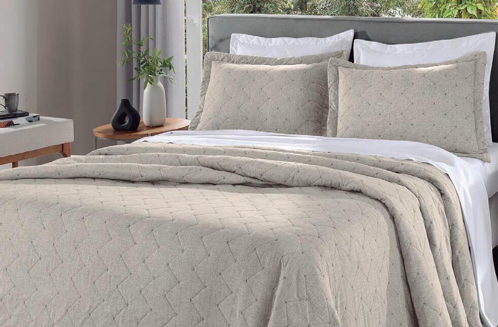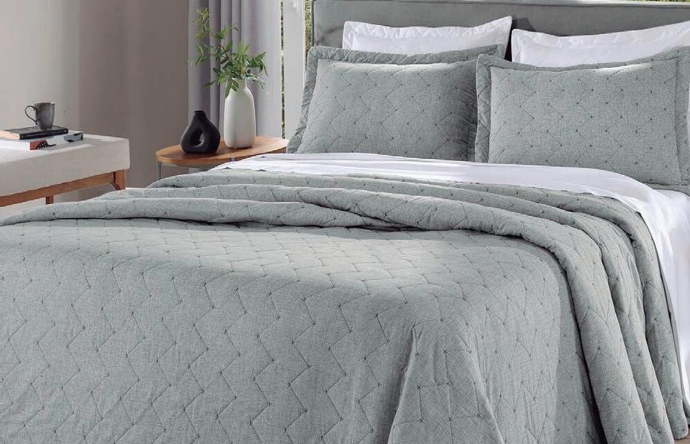 * Colchas e porta-travesseiros com matelassê ultrassônico.