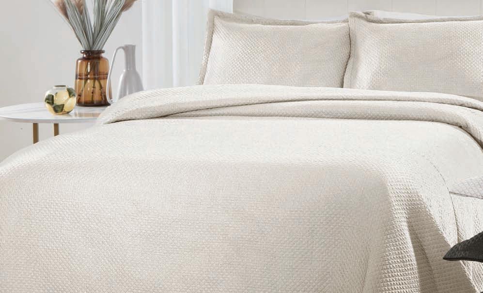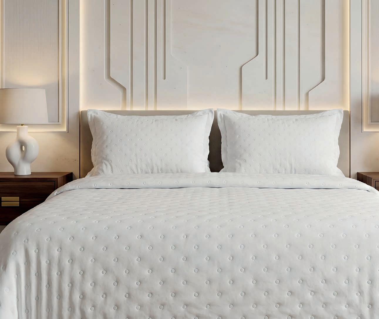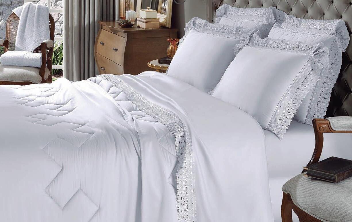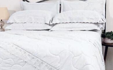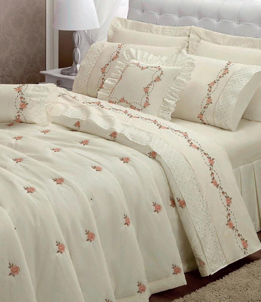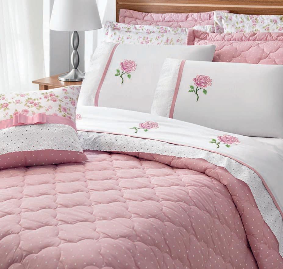 * Colchas e porta-travesseiros com matelassê ultrassônico.