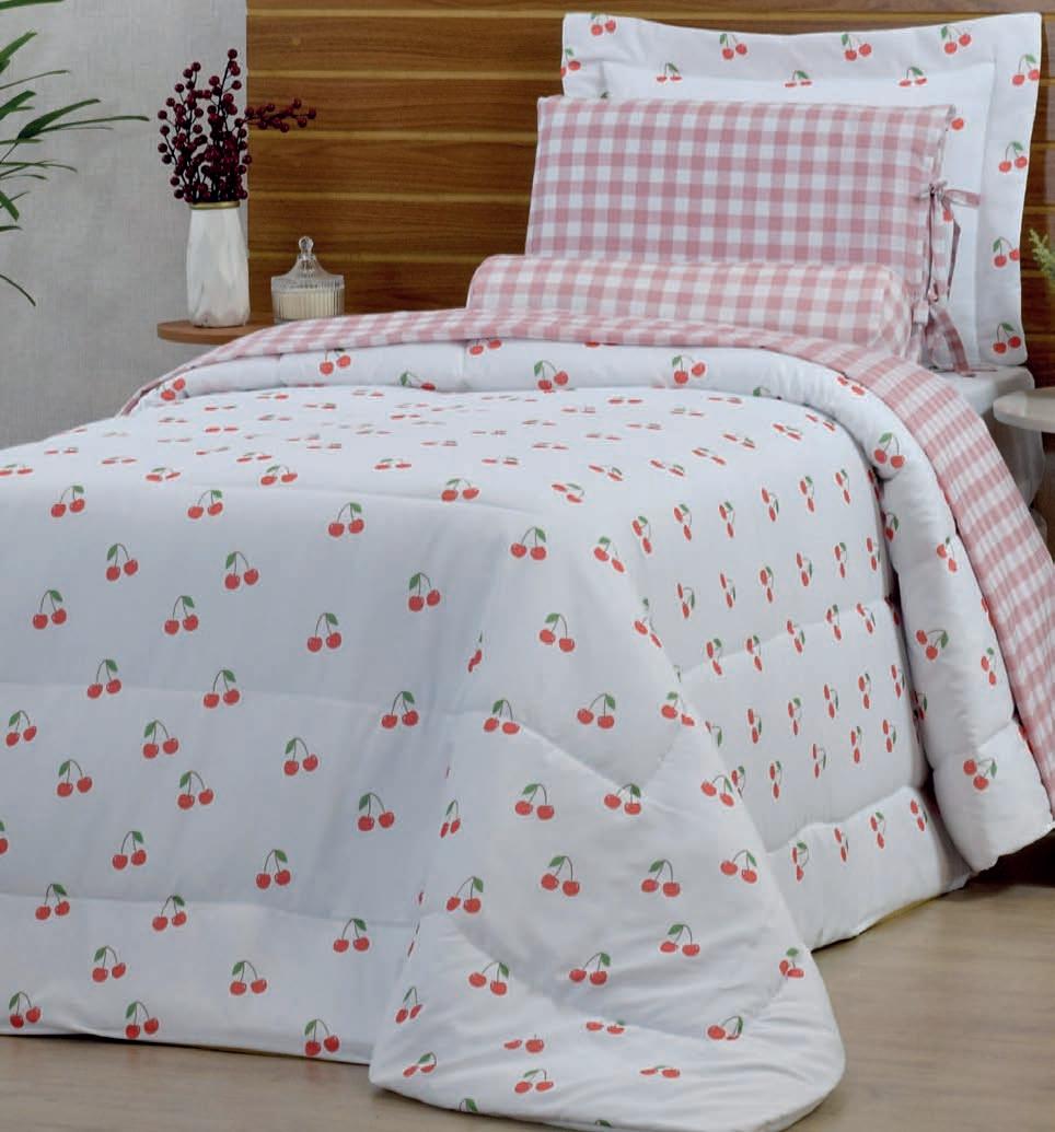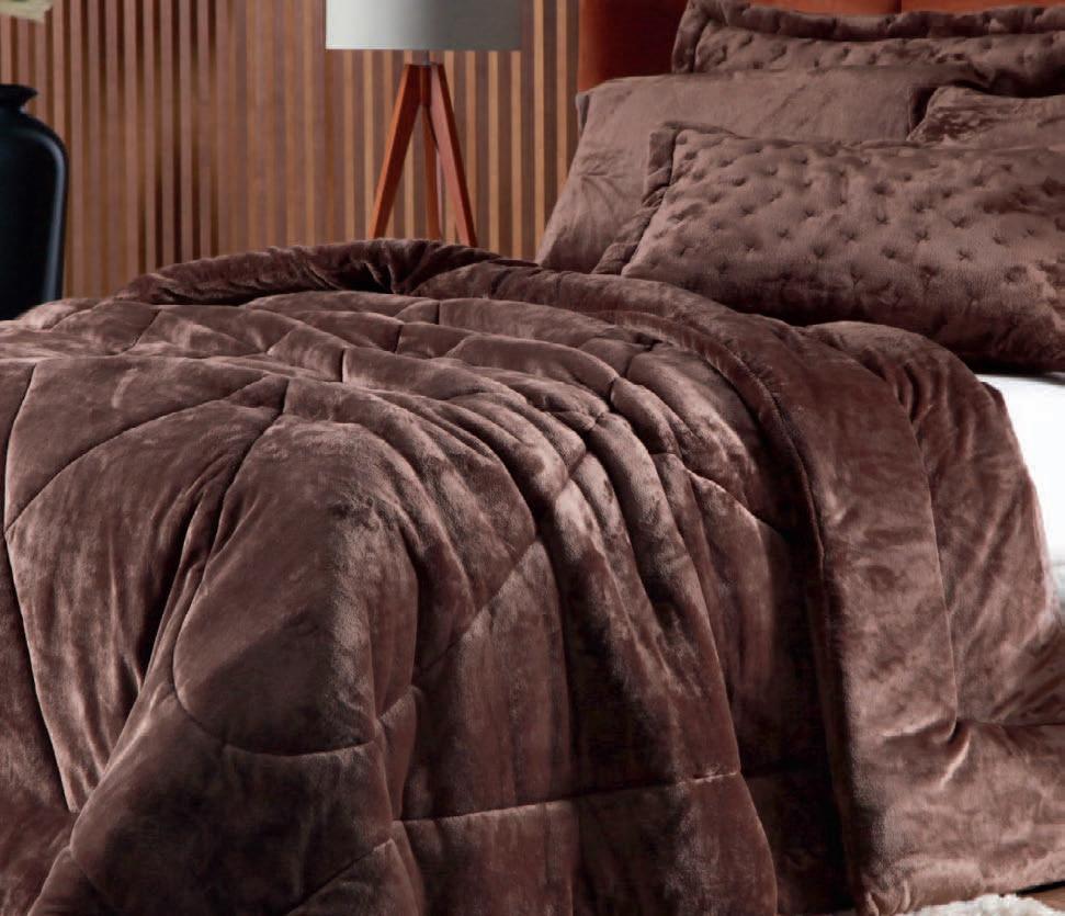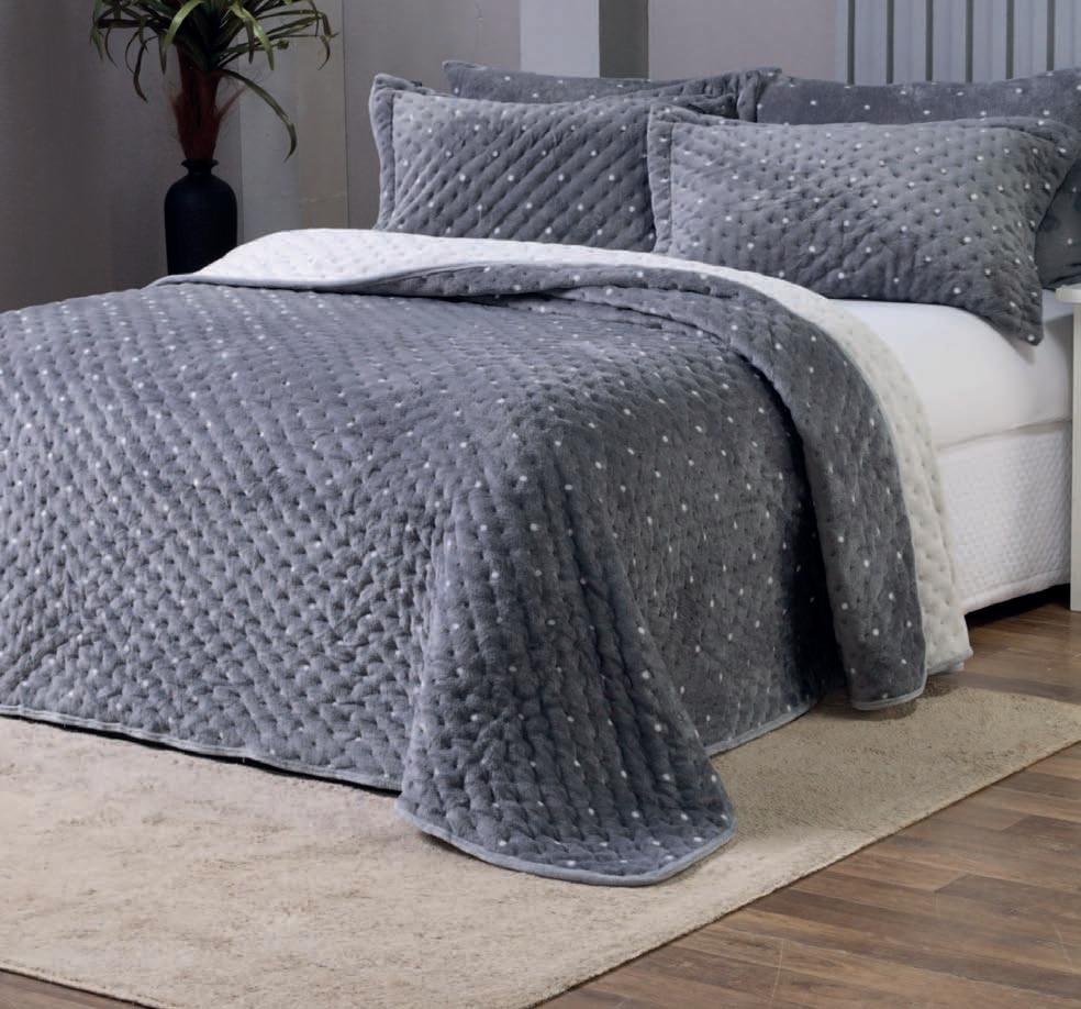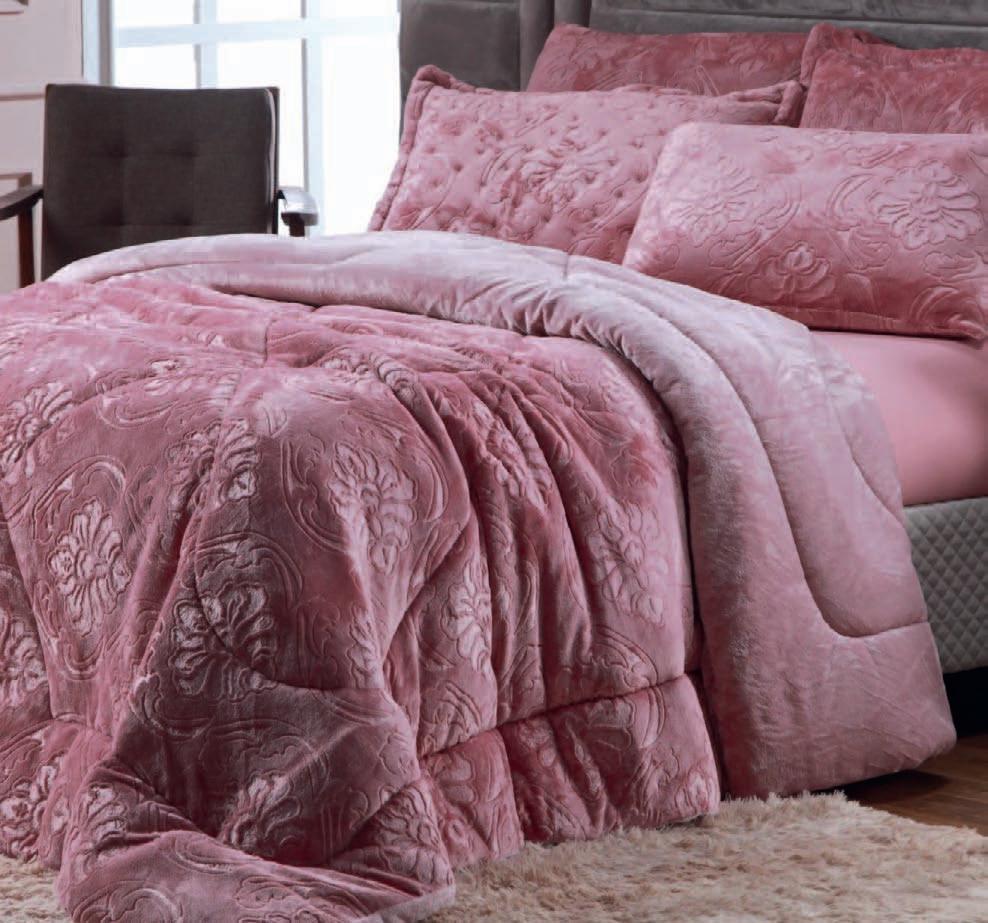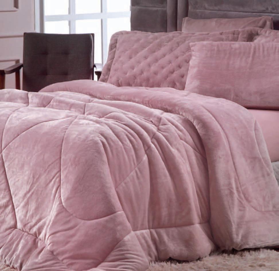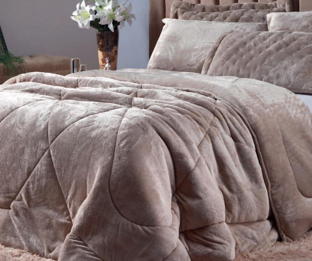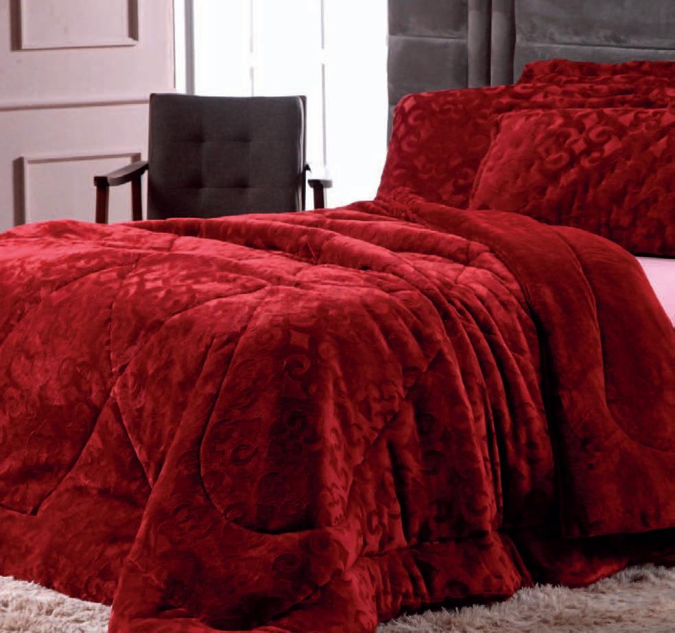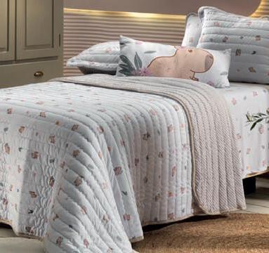 * Colchas e porta-travesseiros com matelassê ultrassônico no mesmo flannel do edredom.