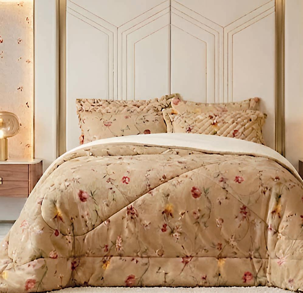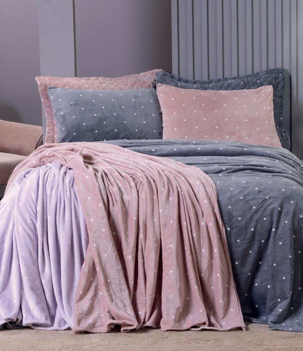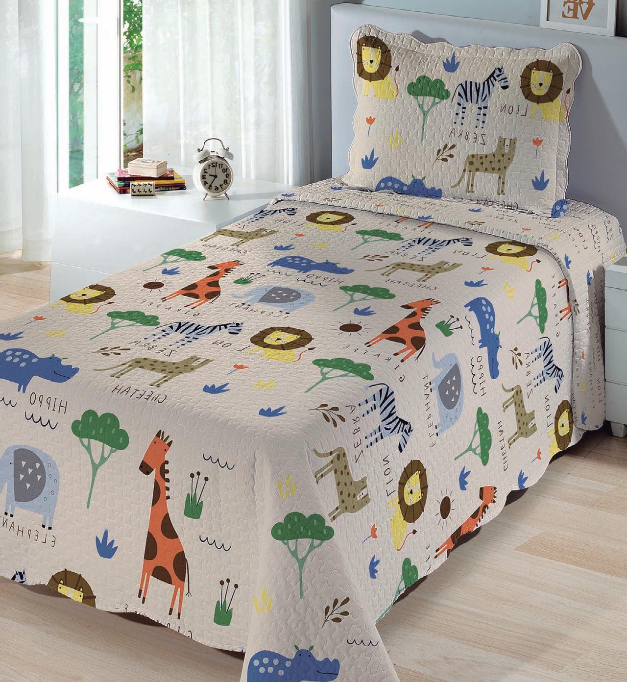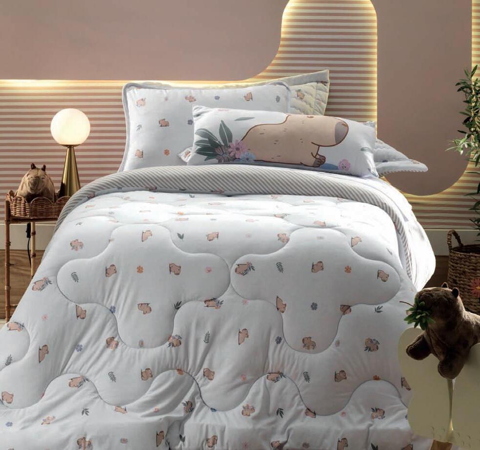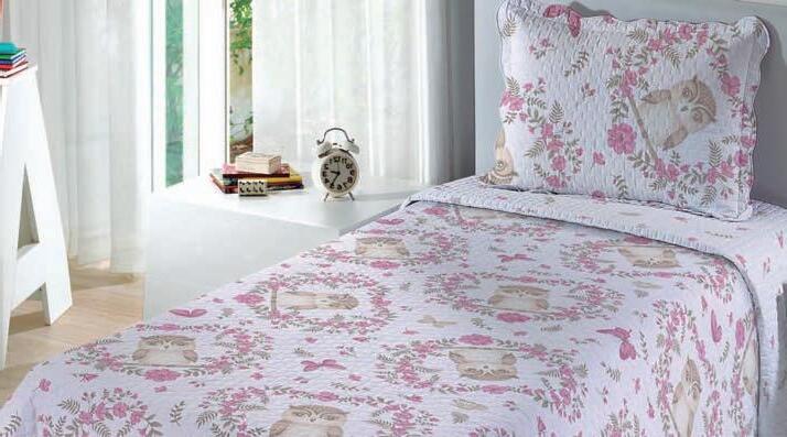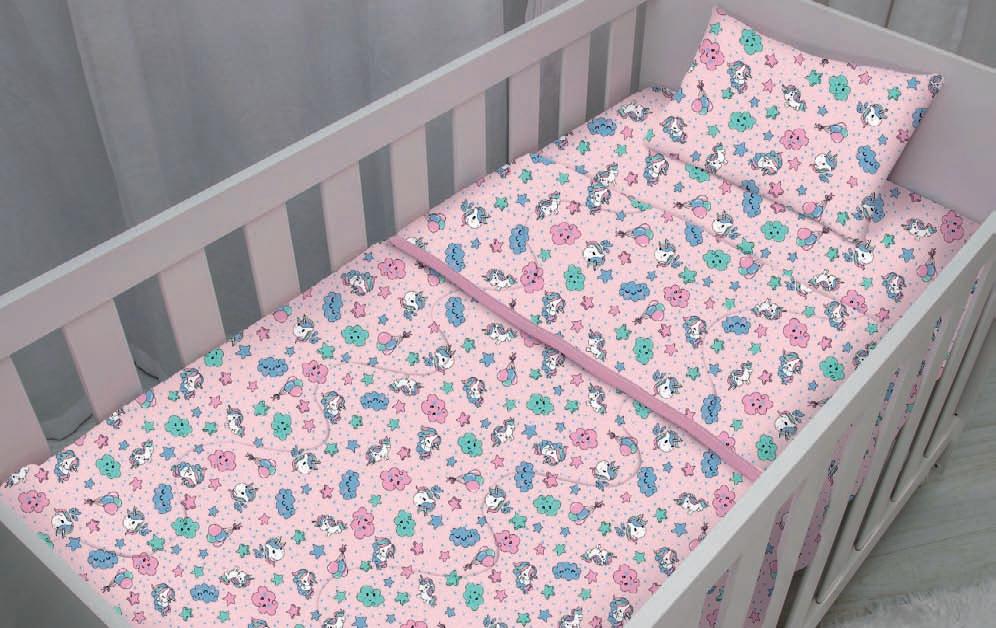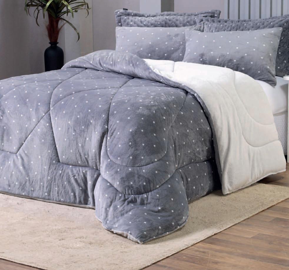 * Colchas e porta-travesseiros com matelassê ultrassônico no mesmo flannel do edredom.