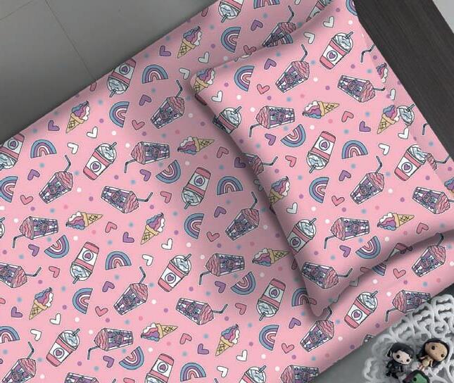 Em tecido algodão 1 de cima estampado 1,40 x 2,10 m 1 de baixo liso 0,88 x 1,88 m + 30 cm de elástico 1 fronha 50 x 70 cm