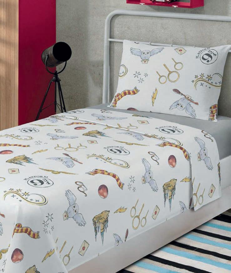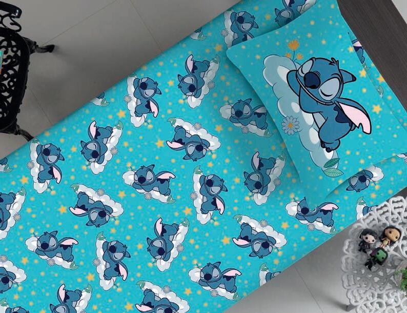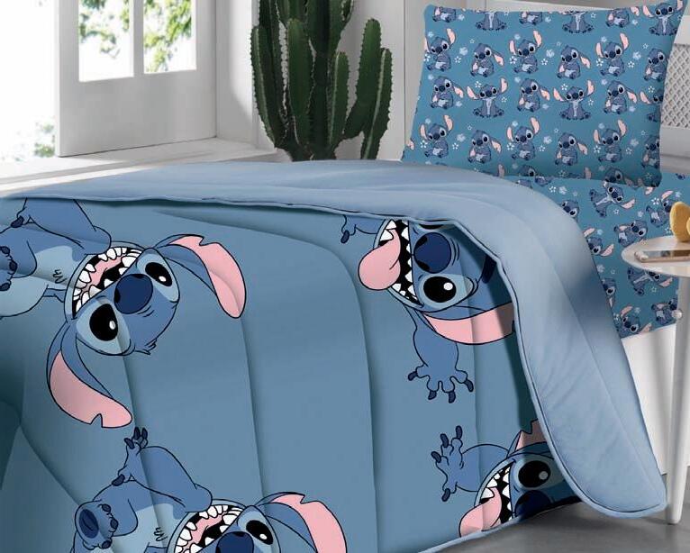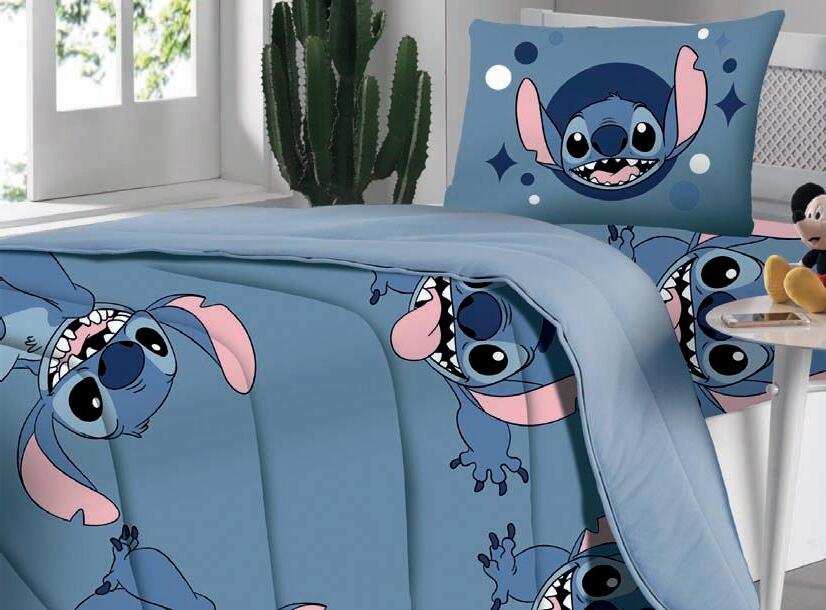 Lençóis, fronhas e edredons, exceto Stich Blue, que é 70% algodão, 30% poliéster 100% algodão