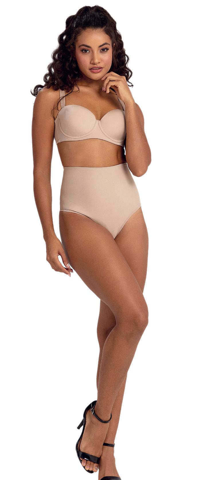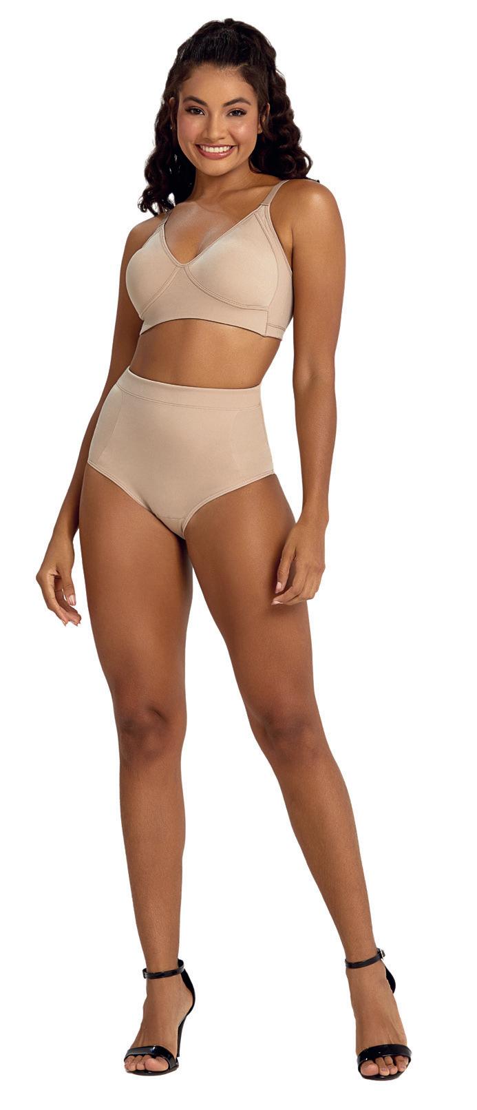 Calcinha cintura alta modeladora. Em microfibra com elástico largo, modela e segura sem marcar. Frente, costas e laterais compactadas, comprimindo na medida certa. Cavas contornadas com elásticos de microfibra confortável e resistente. Forro antibacteriano.