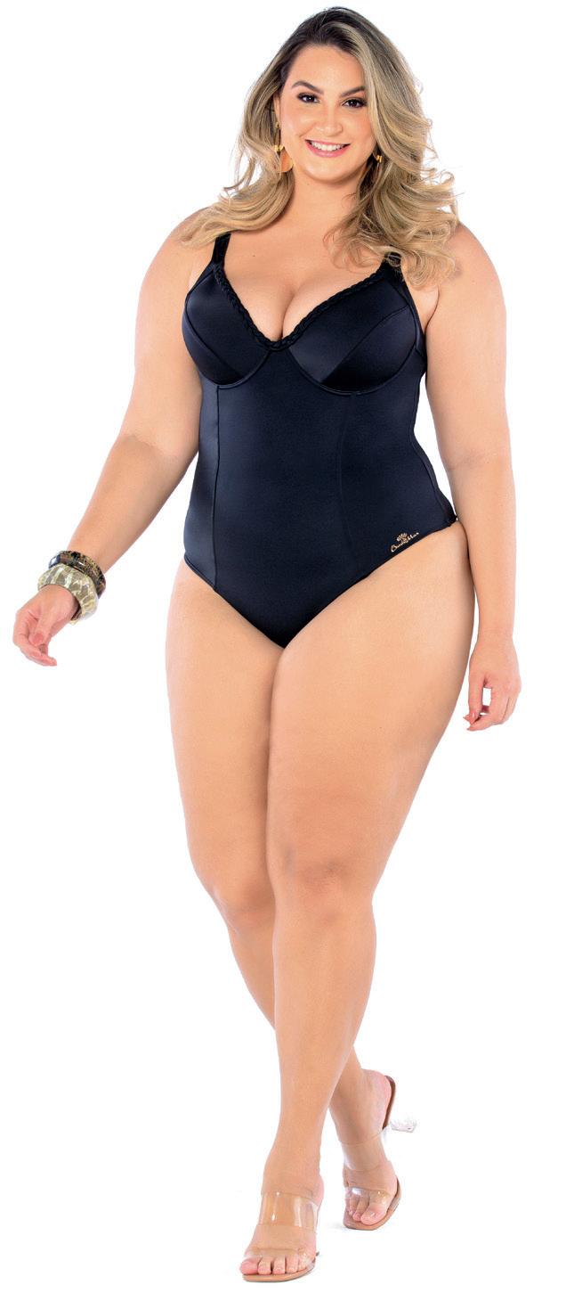 Em lycra e franzido na base do busto. Decote, alças e bojos de boa cobertura. Fecho nas costas, forro em microfibra e costas de modelagem fechada adequando a sustentação necessária.