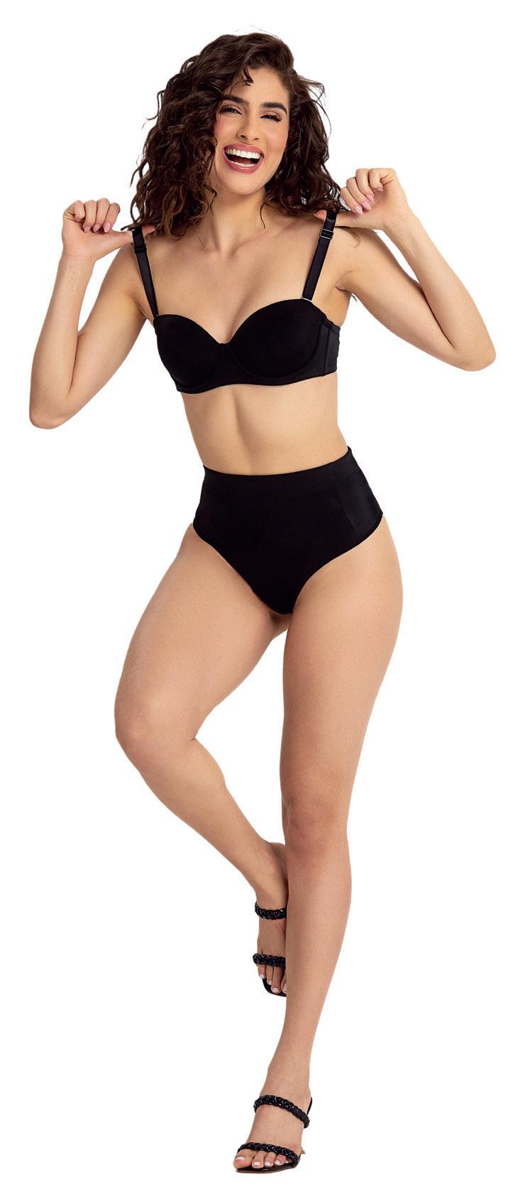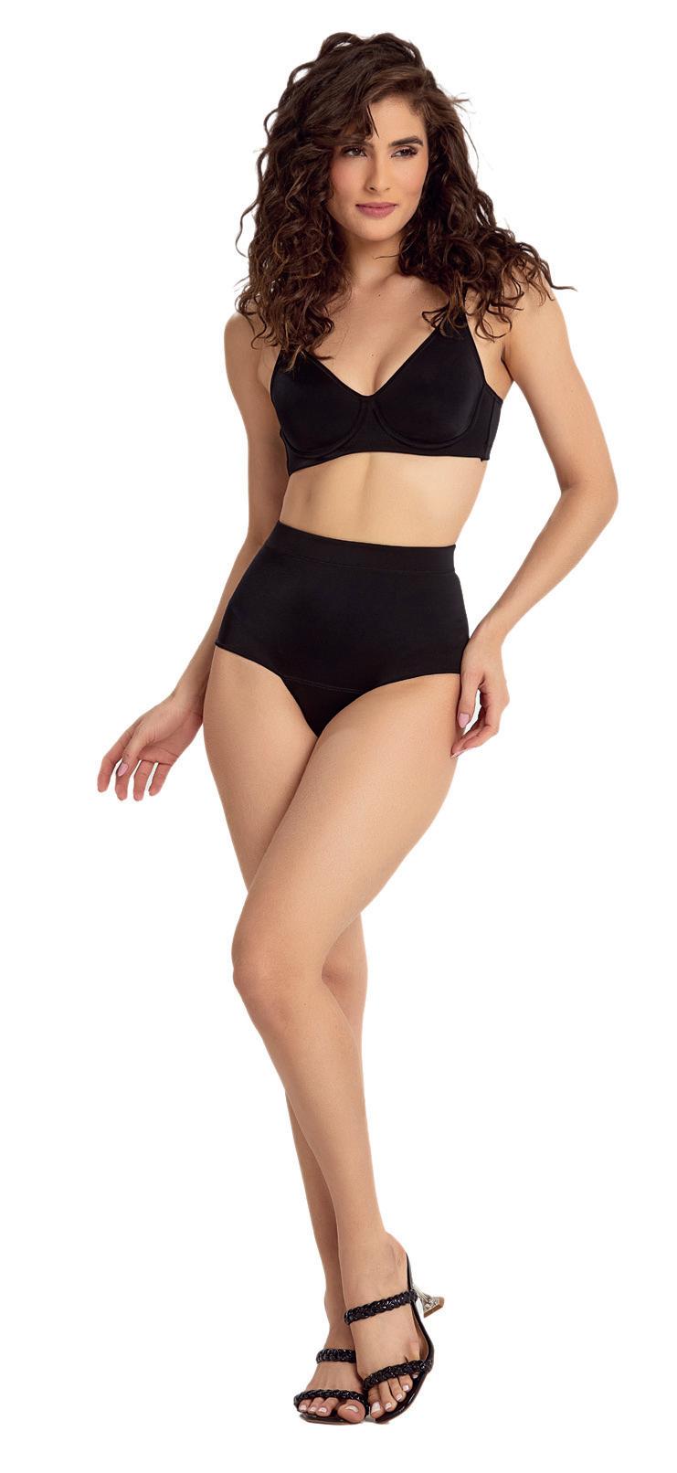 Calcinha cintura alta modeladora. Em microfibra com elástico largo, modela e segura sem marcar. Frente, costas e laterais compactadas, comprimindo na medida certa. Cavas contornadas com elásticos de microfibra confortável e resistente. Forro antibacteriano.