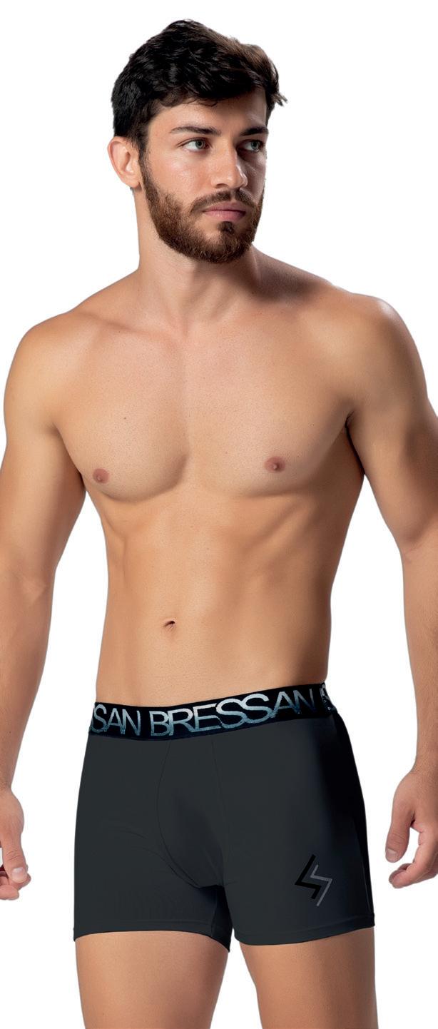 Cueca boxer em microfibra. Sem costura, cós bordado e perna alongada.
