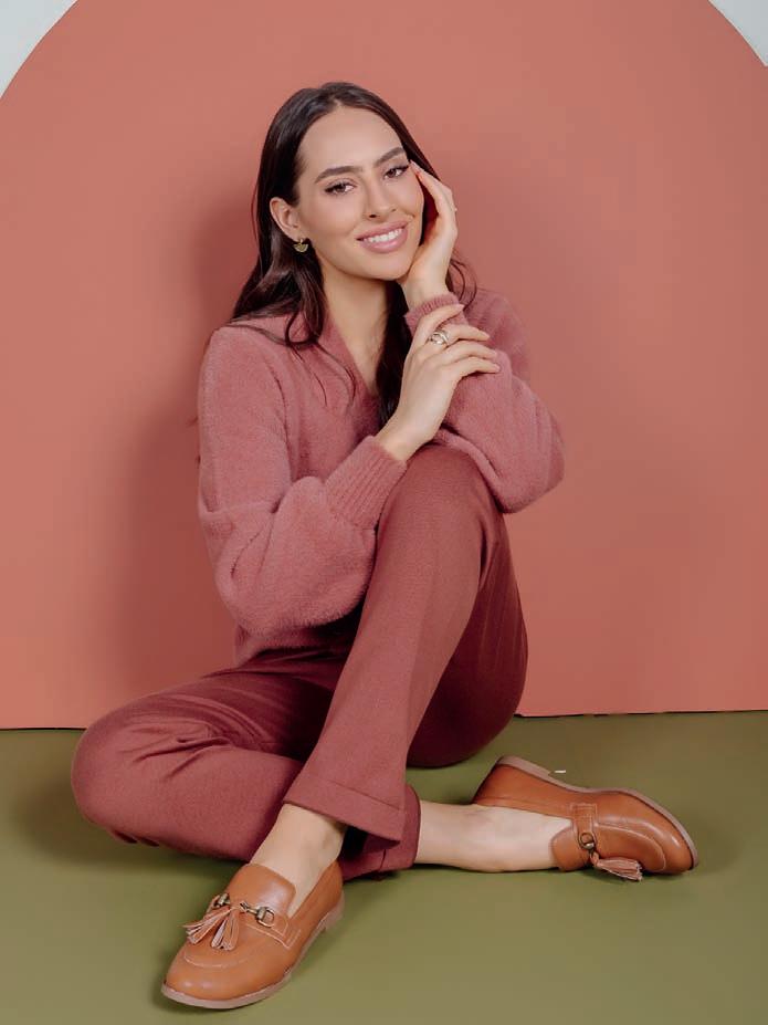 Mocassim, cabedal em PU, forração em tecido, palmilha em espuma cacharrel forrada em tecido cacharrel, solado em PU emborrachado, salto 3 cm