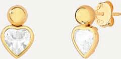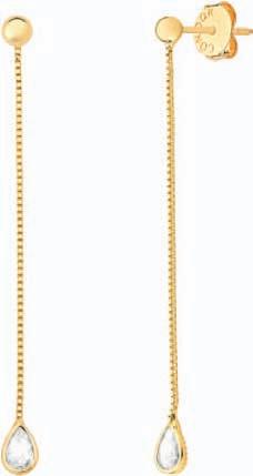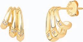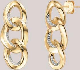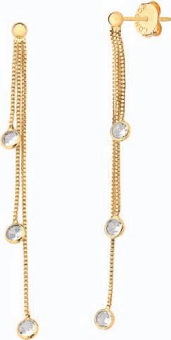 brinco elos folheado a ouro com pedras de zircônia e detalhes em ródio branco