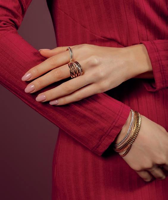 anel 7 elos folheado a ouro com detalhes folheado a ouro rosê e ródio branco