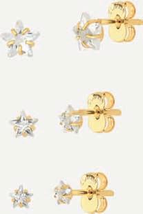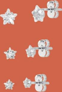 conjunto com três pares de brincos estrela folheados a prata com pedras de zircônia