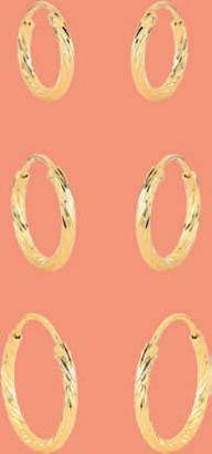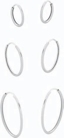 conjunto com três pares de brincos argolas folheados a prata super leve com espessura fina