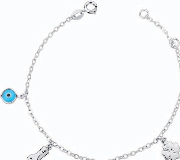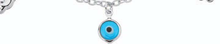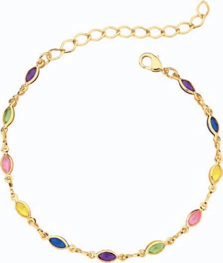 Ref. 035659-000FP pulseira proteção folheada a prata com vidro colorido Tam. 18 cm com regulador para 16 cm