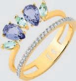 Ref.053756-000 anel voltas gota folheado a ouro com pedras de zircônia e detalhes em ródio branco