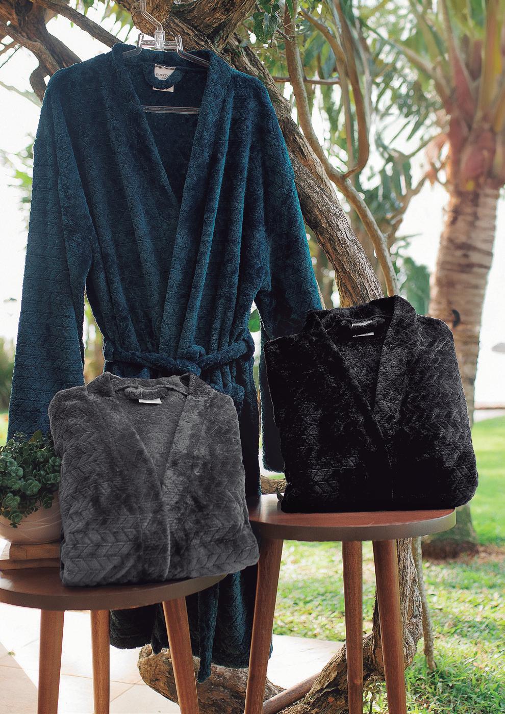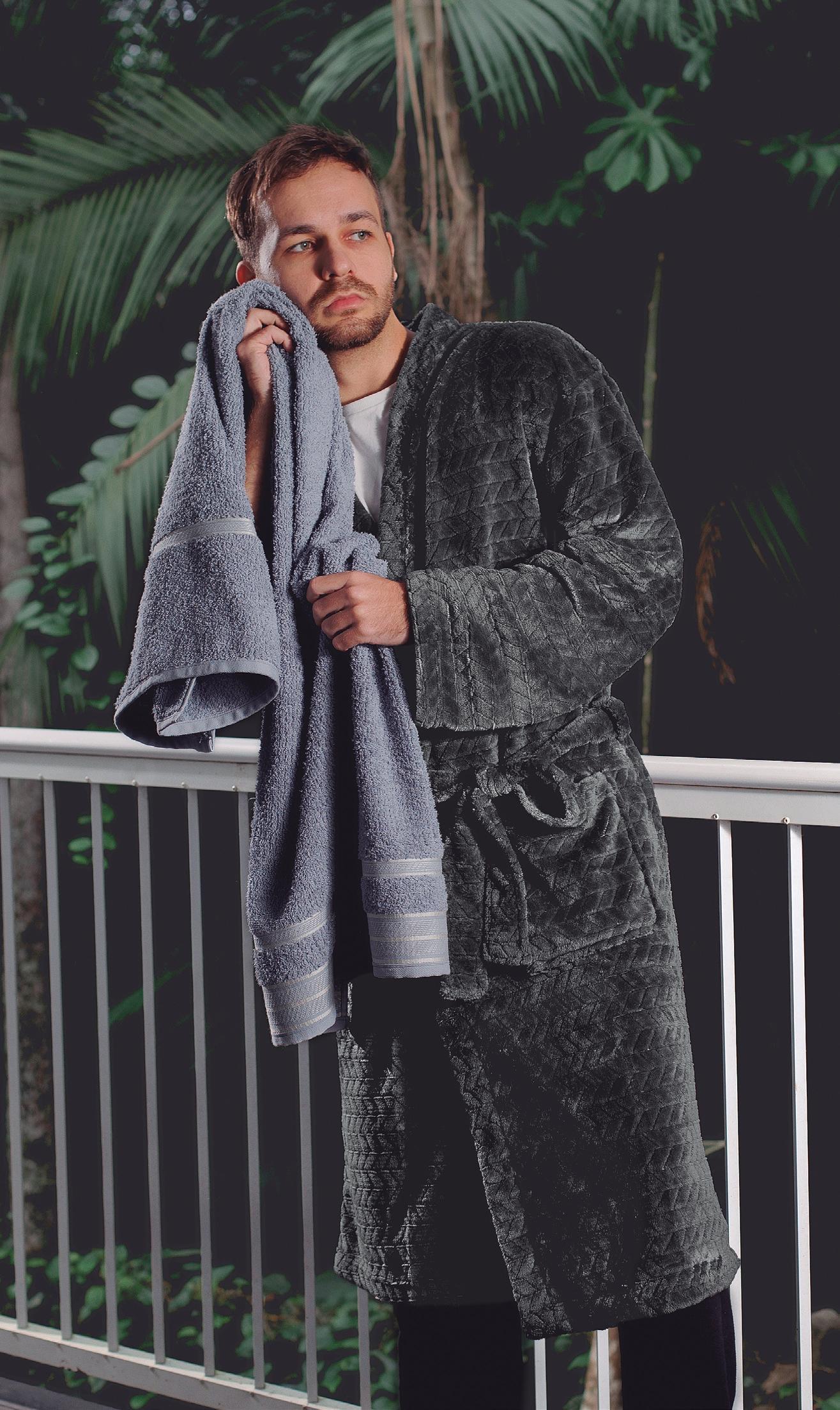 Roupão kimono masculino em plush jacquard Com cinto e bolsos
