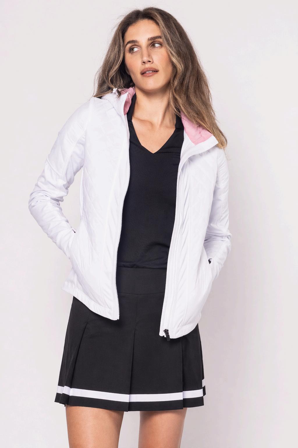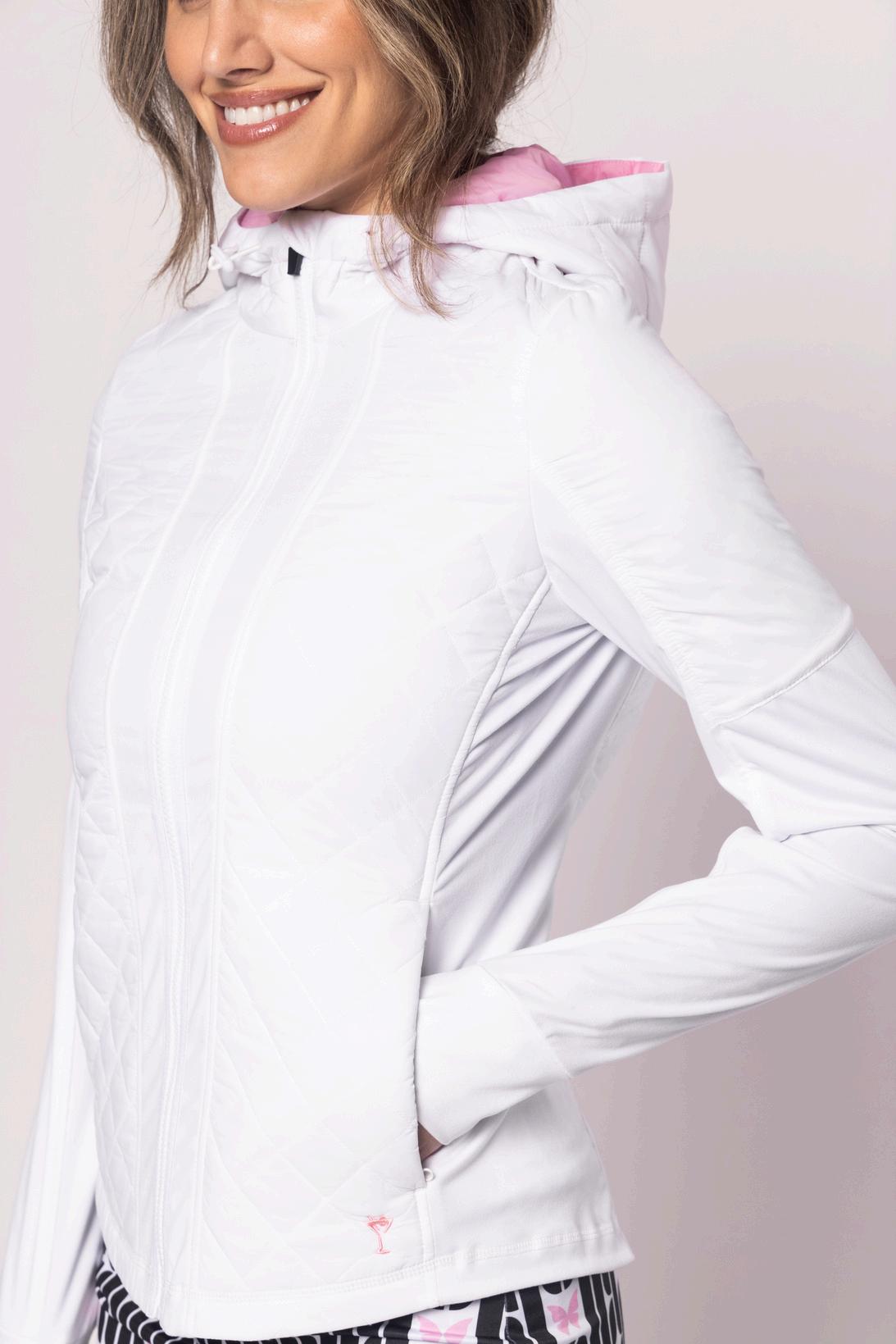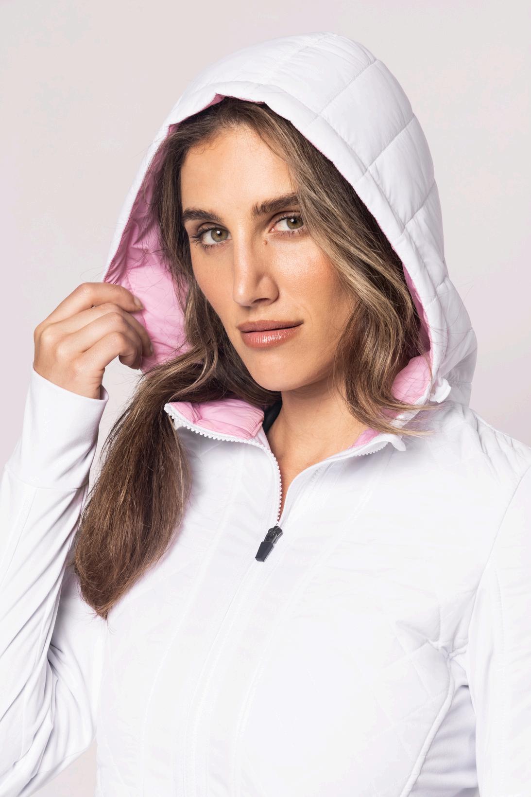 88% polyester, 12% spandex, 100% quilted polyester | pink accent hood