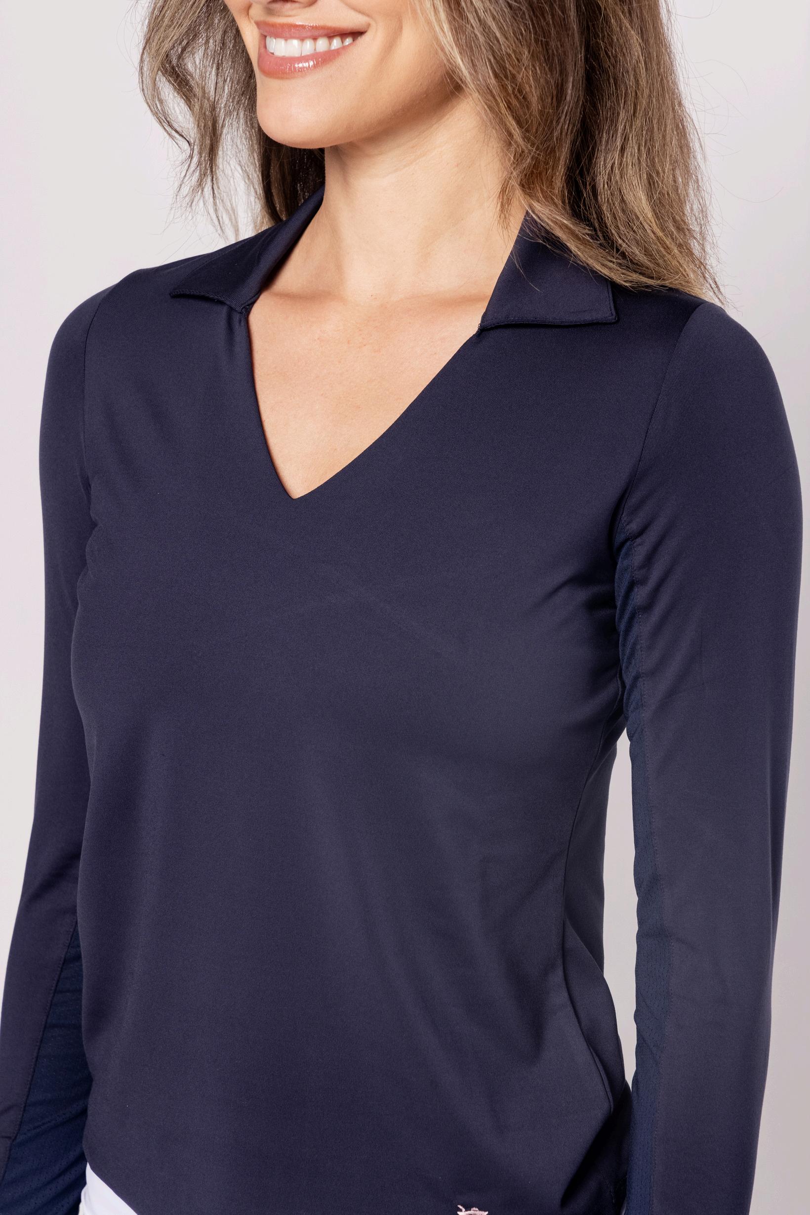 $55 | fabulous fabric 88% polyester, 12% spandex navy martini placket s-xxl