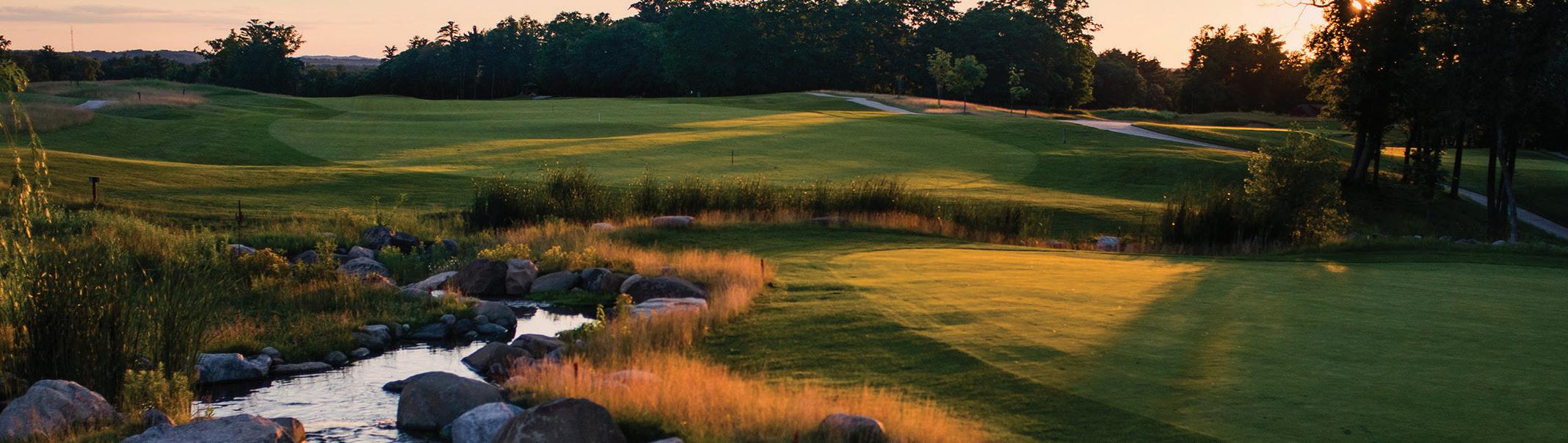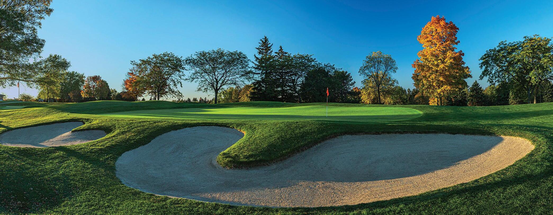The National is an 18-hole, links-style course in Fox Hills Resort’s 45-hole facility in Mishicot, Wisconsin. It combines features of a links course with vast sand areas, sculpted mounds, double greens, and 16 acres of water hazards. The National and the 27-hole The Creeks Golf Course offers novice and advanced golfers an enjoyable golf experience wrapped within the beauty of Wisconsin’s rolling countryside.