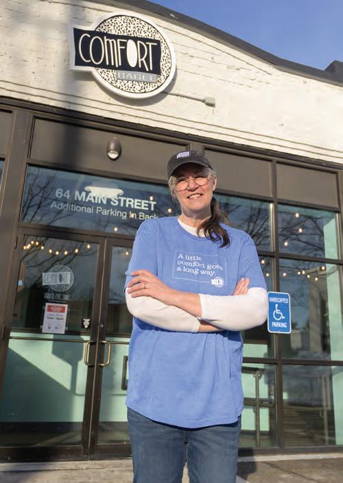 O wner Janet Blake explained, “Comfort Bagel is the only bagel shop in the area making sourdough bagels. Our bagels are made using a natural sourdough starter and a long fermentation process. This slower fermentation helps break down gluten, reduce phytic acid and make nutrients easier for the body to absorb.”