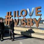 Eller Visby som vi är på väg till nu. Hallå! Vi rullar på färjan nu. Hall..! Mottagningen är halvdå…