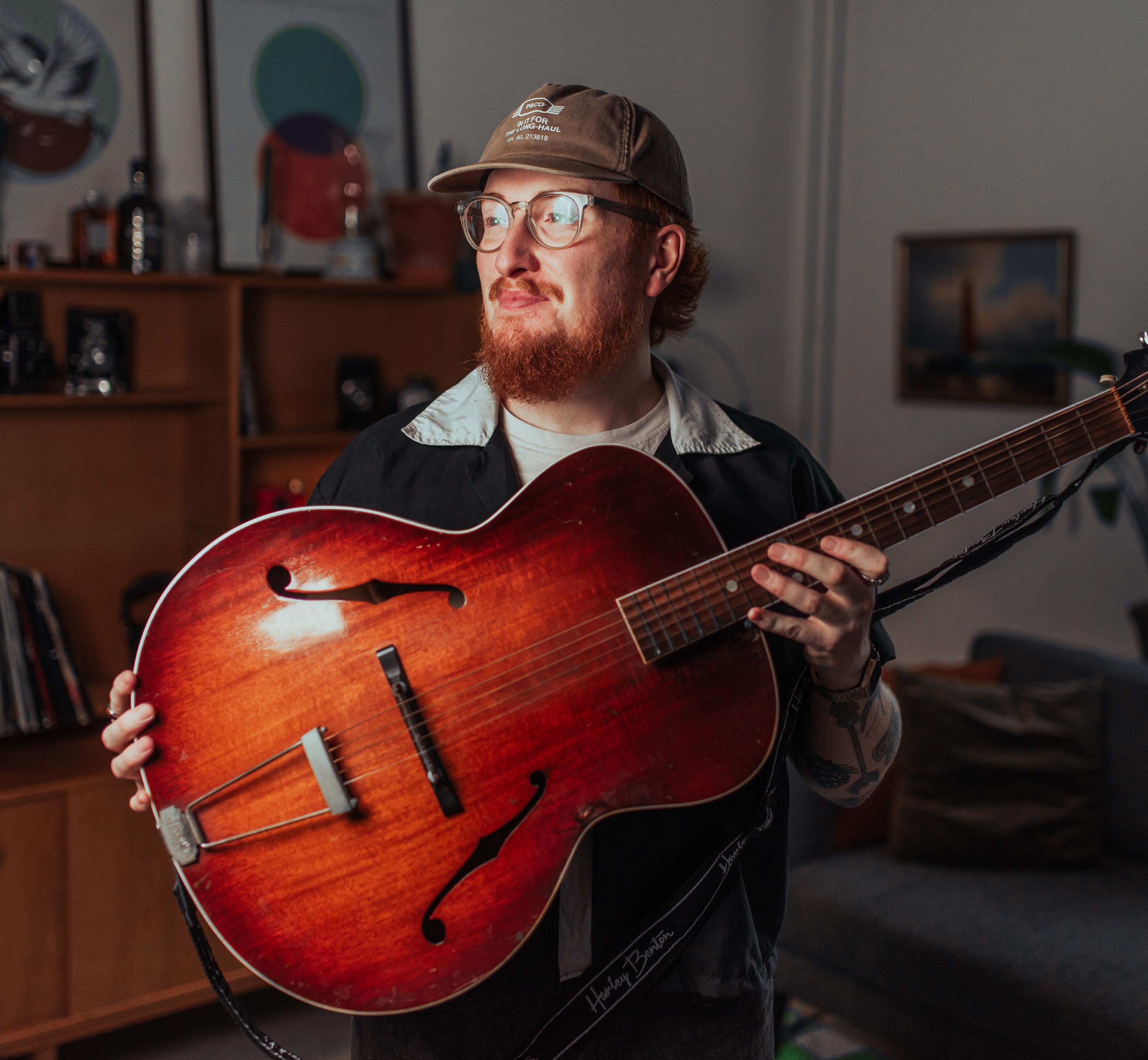 – Den här gitarren är nog mitt bästa fynd, den köpte jag för 250 kr och den är