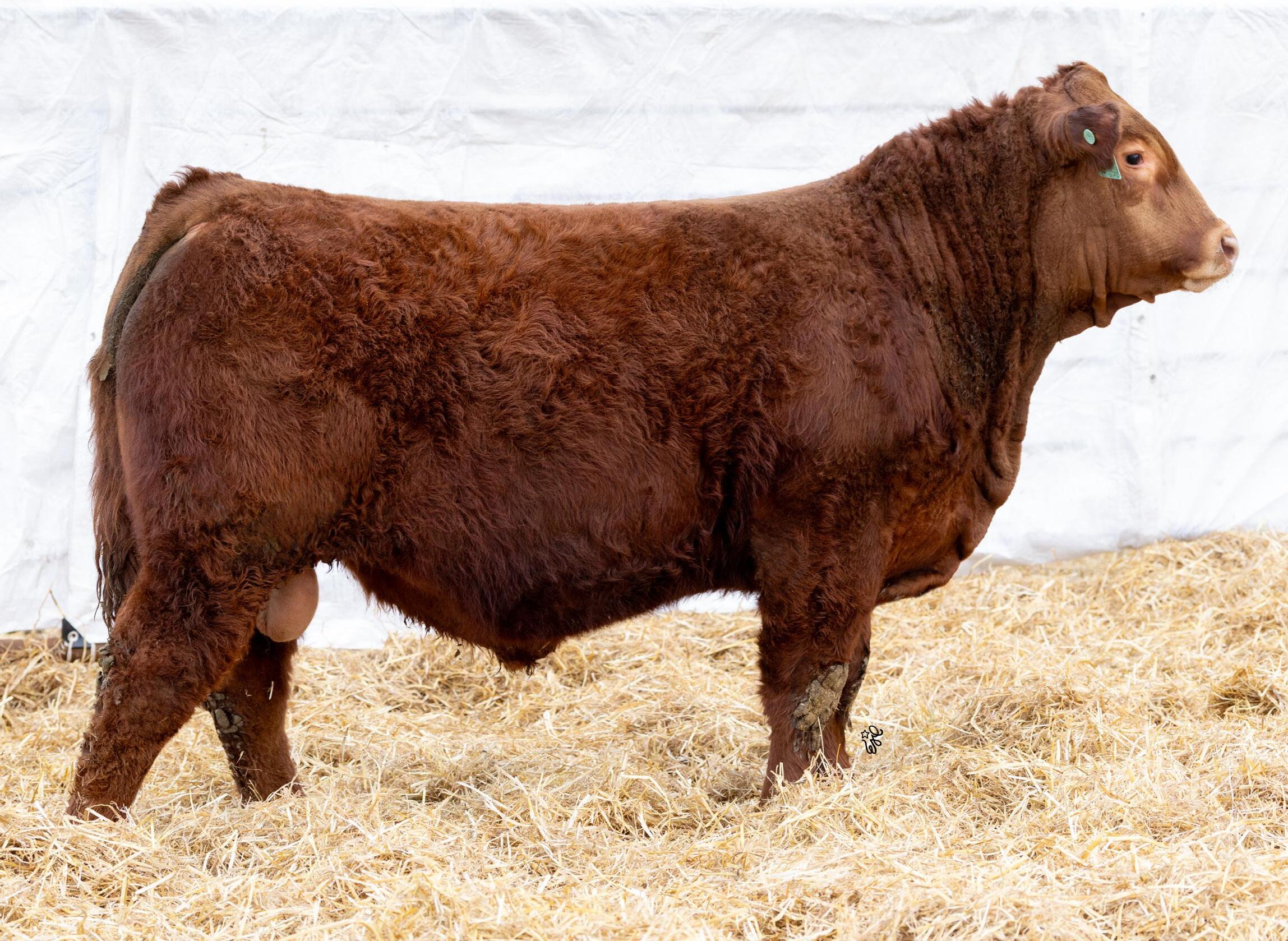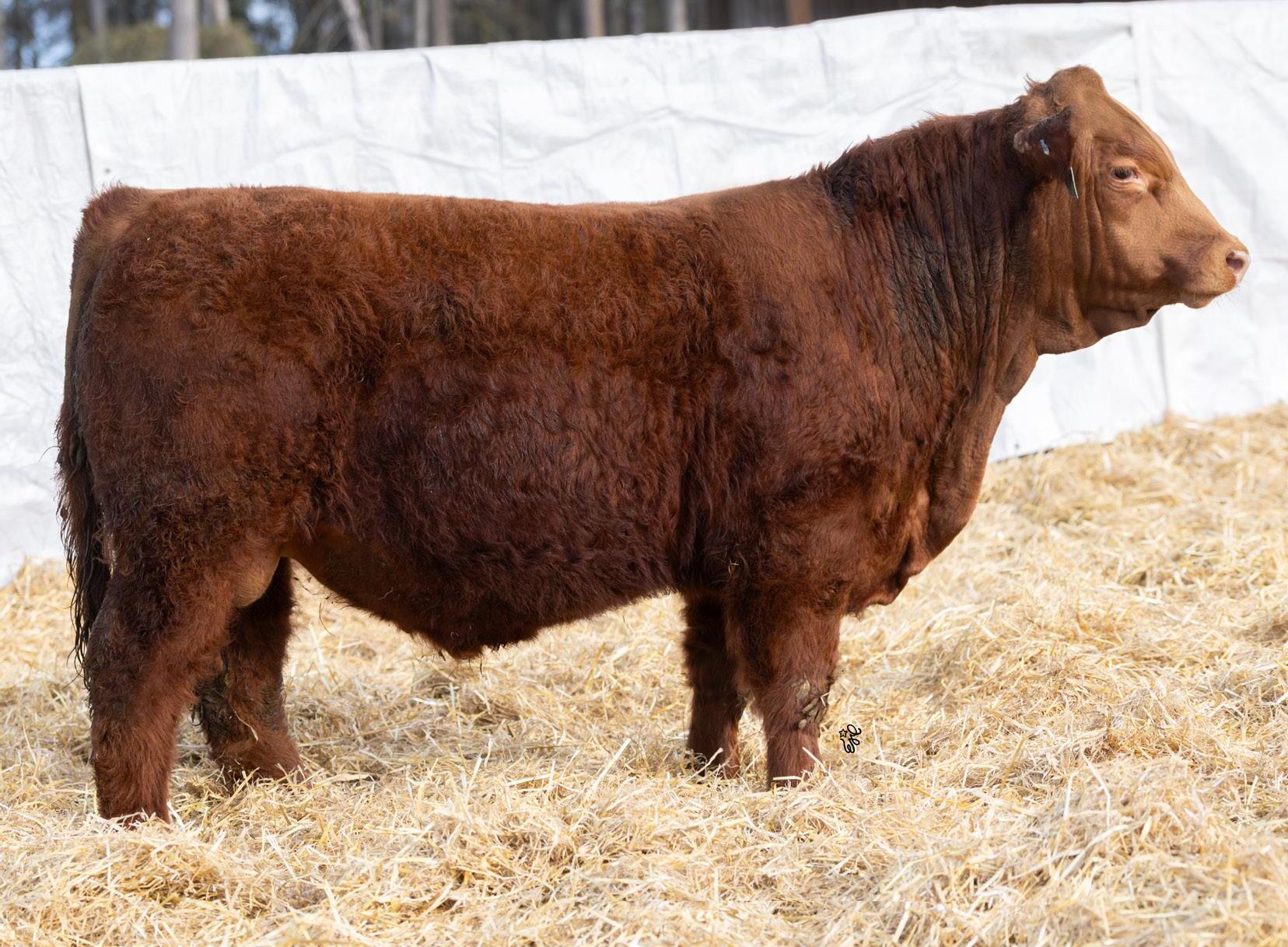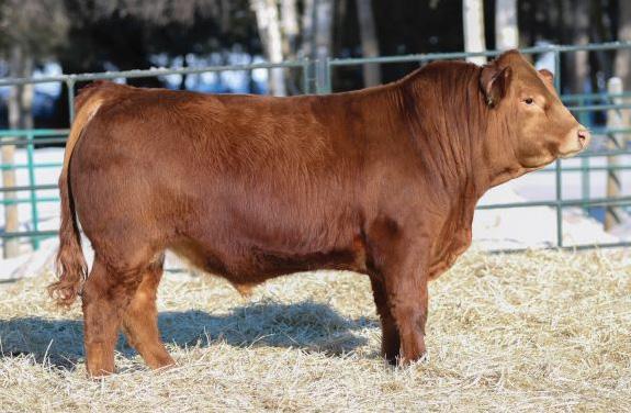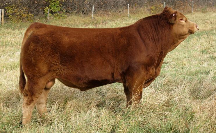 If you are impressed by the Harley sons, but wanted one in red package then here you go! Genetics are a funny deal and sometimes black + black = red. Luckily in this case it also equals dang good! This bull has tons of muscle expression and is big ribbed and big topped. His dam is one of our leading black cows with sons working for Ken Allison and Michael Matvieshan.