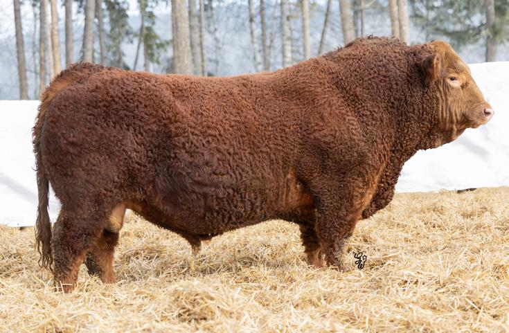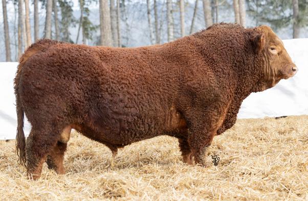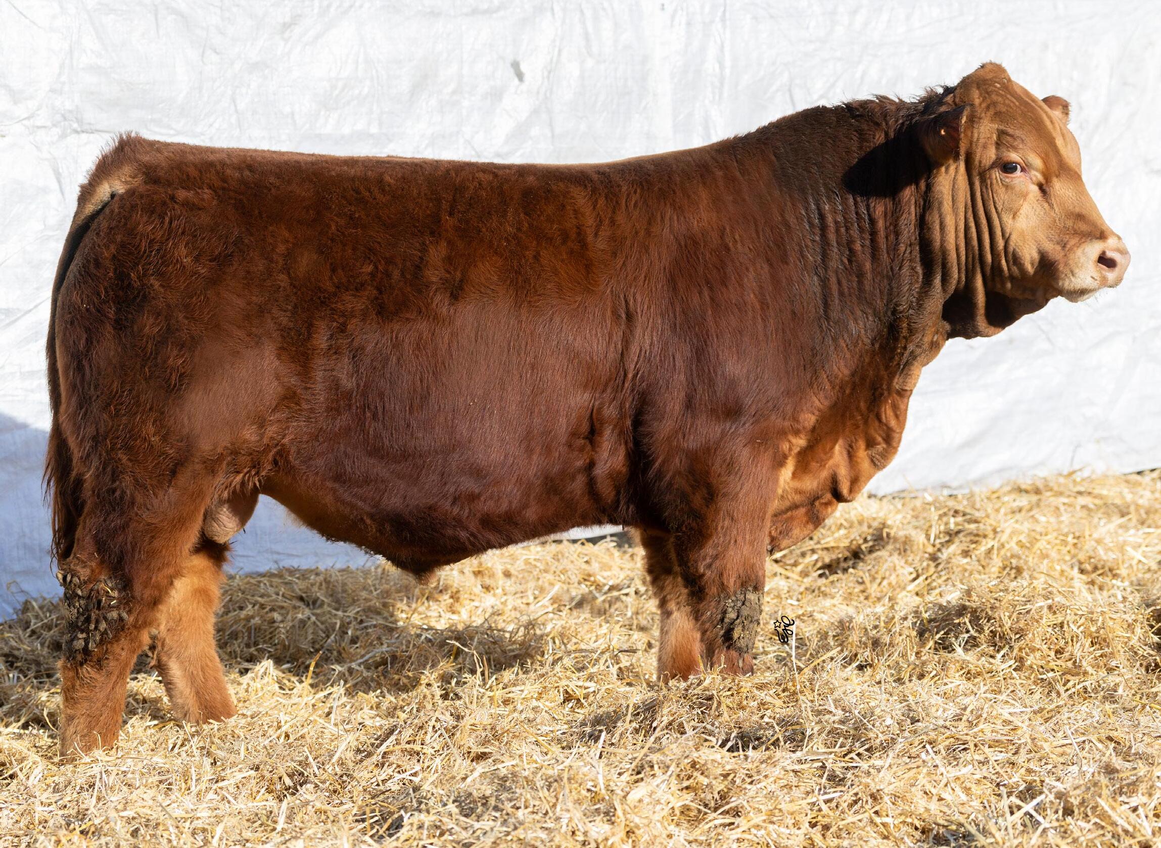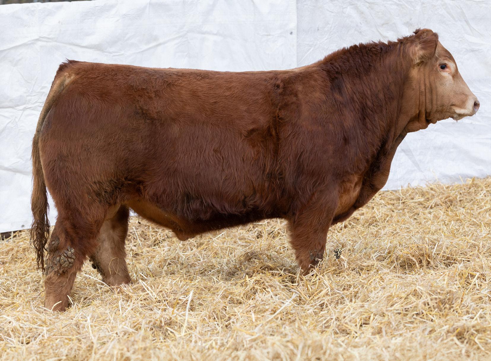 Huge hipped bull here with tons of muscle and dimension. This Hector son is unique individual with a ton of style and eye appeal. He has a bit of scur on his skull, but don’t be worried, I assure you it is not horns. This bull is backed by an impressive set of grow and carcass numbers, some in the top 3% of the breed. He has a maternal brother working for Marvin Monical and a maternal sister working for Tyler Skeels of Rimbey, AB.