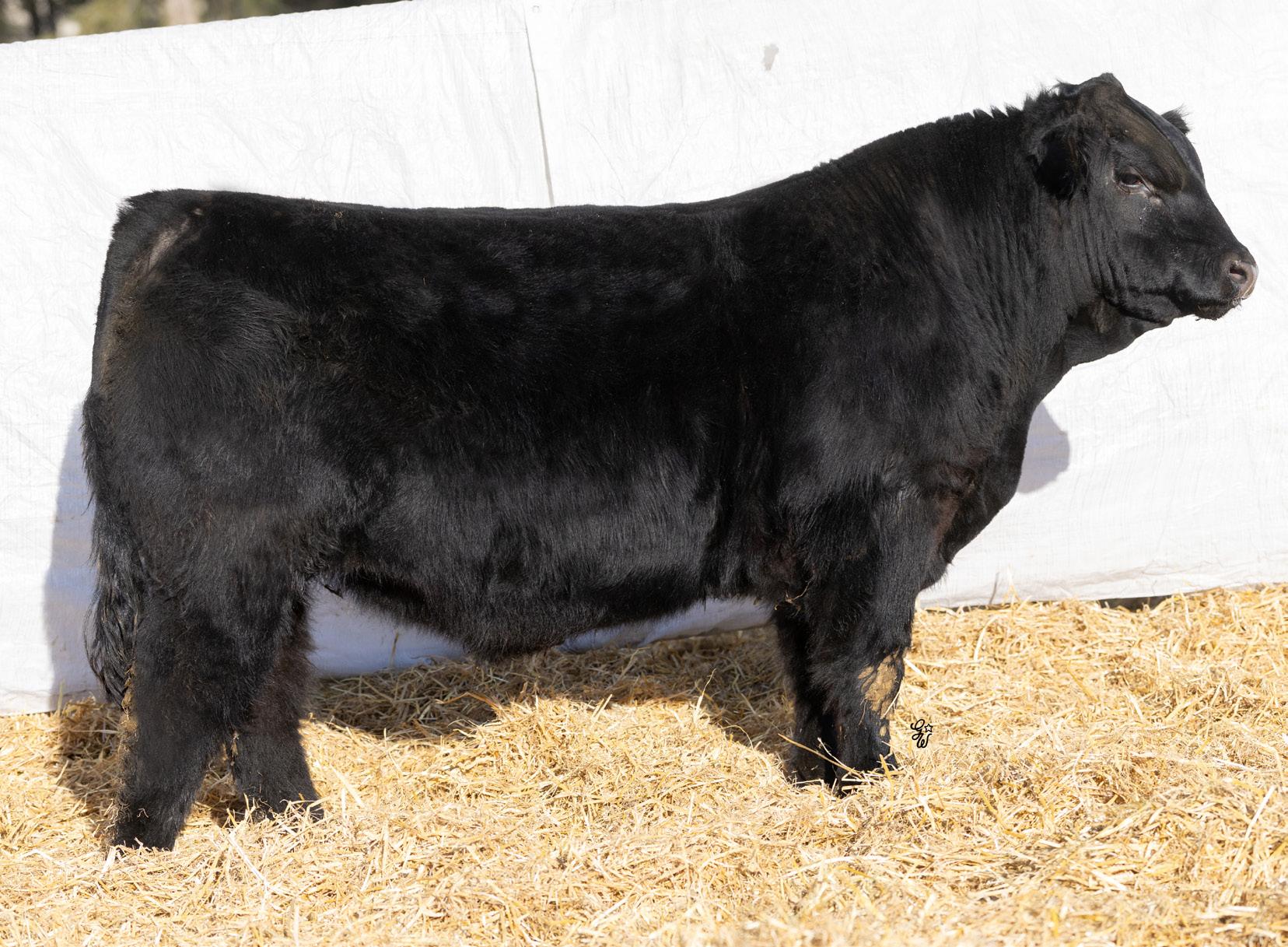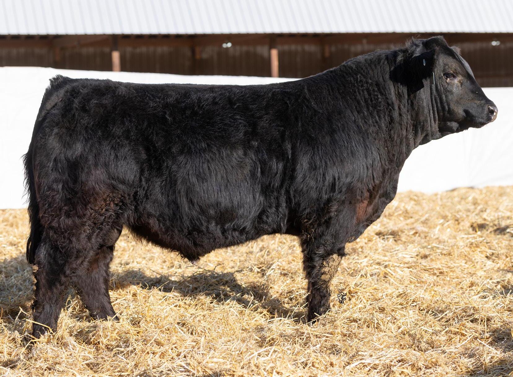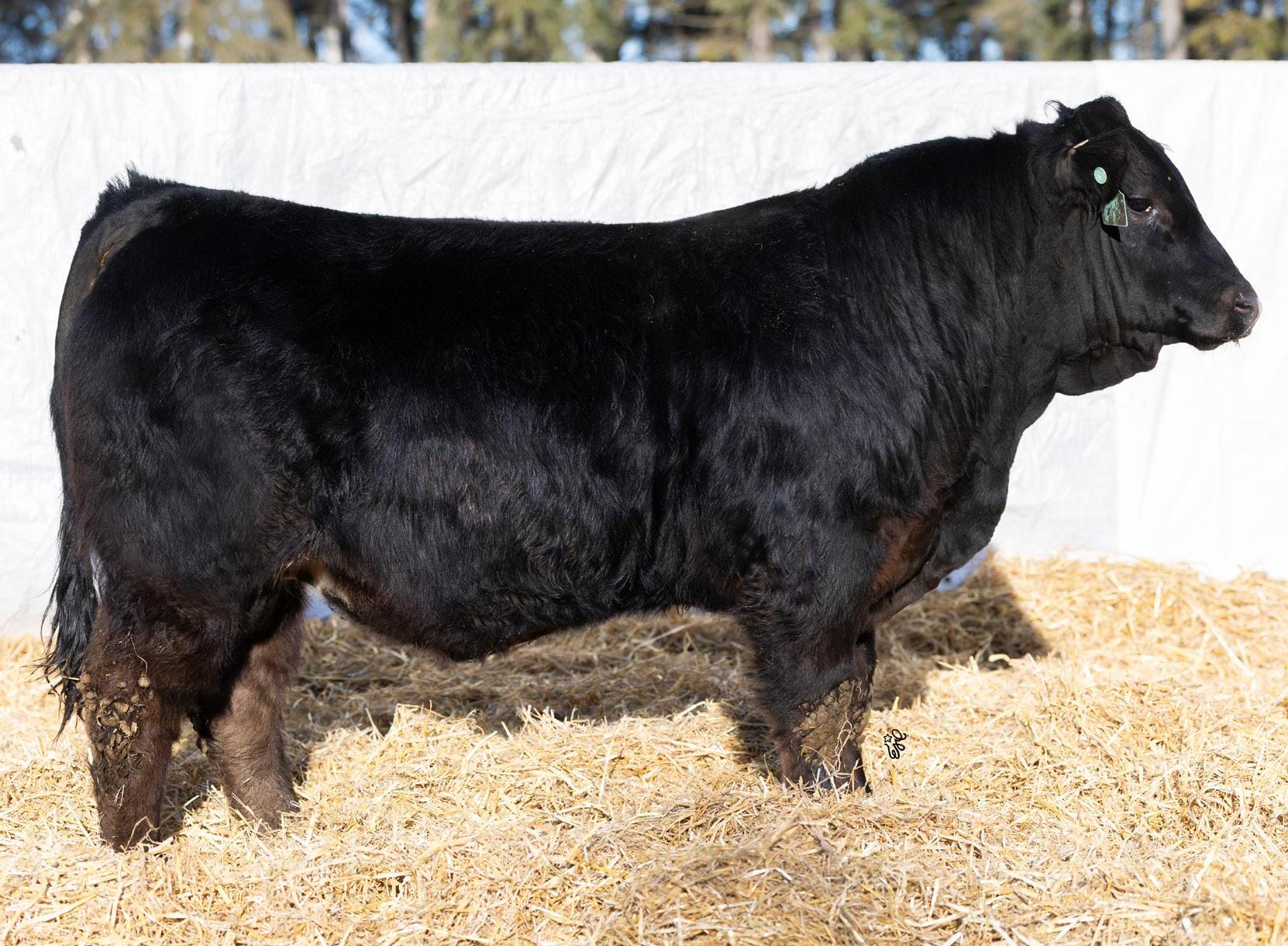 You may have Ninety Nine problems but calving trouble won’t be one with this guy in charge. Just a moderate 88Lb BW coupled with his smooth shoulder and long sided carcass are the makings for a sleep easy herdsire. His 10 year old dam has been one of our most consistent producers holding her condition, foot structure, udder structure, and calving on time every year. If you want one to keep daughters out of this guy would be high on my list as his dam currently has 3 daughters in production for us and Payne Livestock. He also has a maternal brother working for Michael Matvieshan in Kelowna, BC.