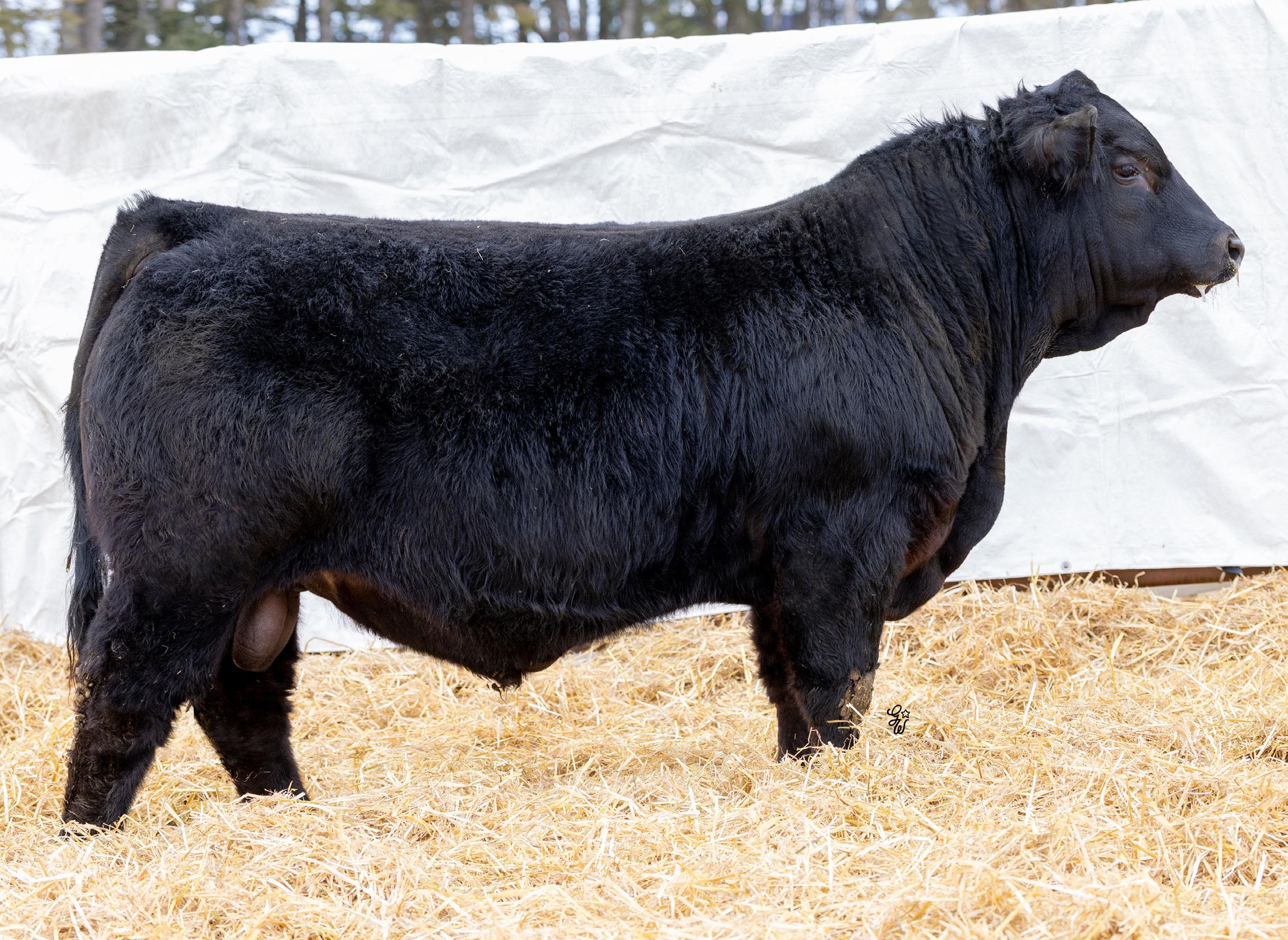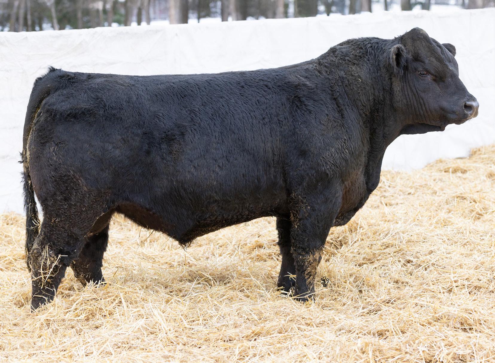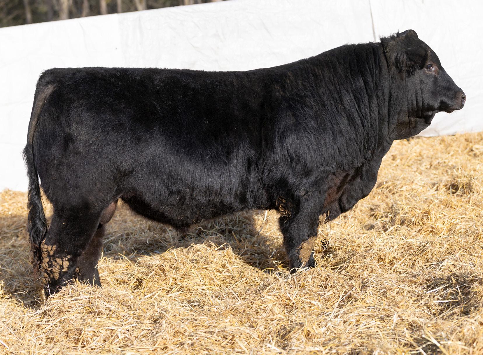 You may have Ninety Nine problems but calving trouble won’t be one with this guy in charge. Just a moderate 88Lb BW coupled with his smooth shoulder and long sided carcass are the makings for a sleep easy herdsire. His 10 year old dam has been one of our most consistent producers holding her condition, foot structure, udder structure, and calving on time every year. If you want one to keep daughters out of this guy would be high on my list as his dam currently has 3 daughters in production for us and Payne Livestock. He also has a maternal brother working for Michael Matvieshan in Kelowna, BC.