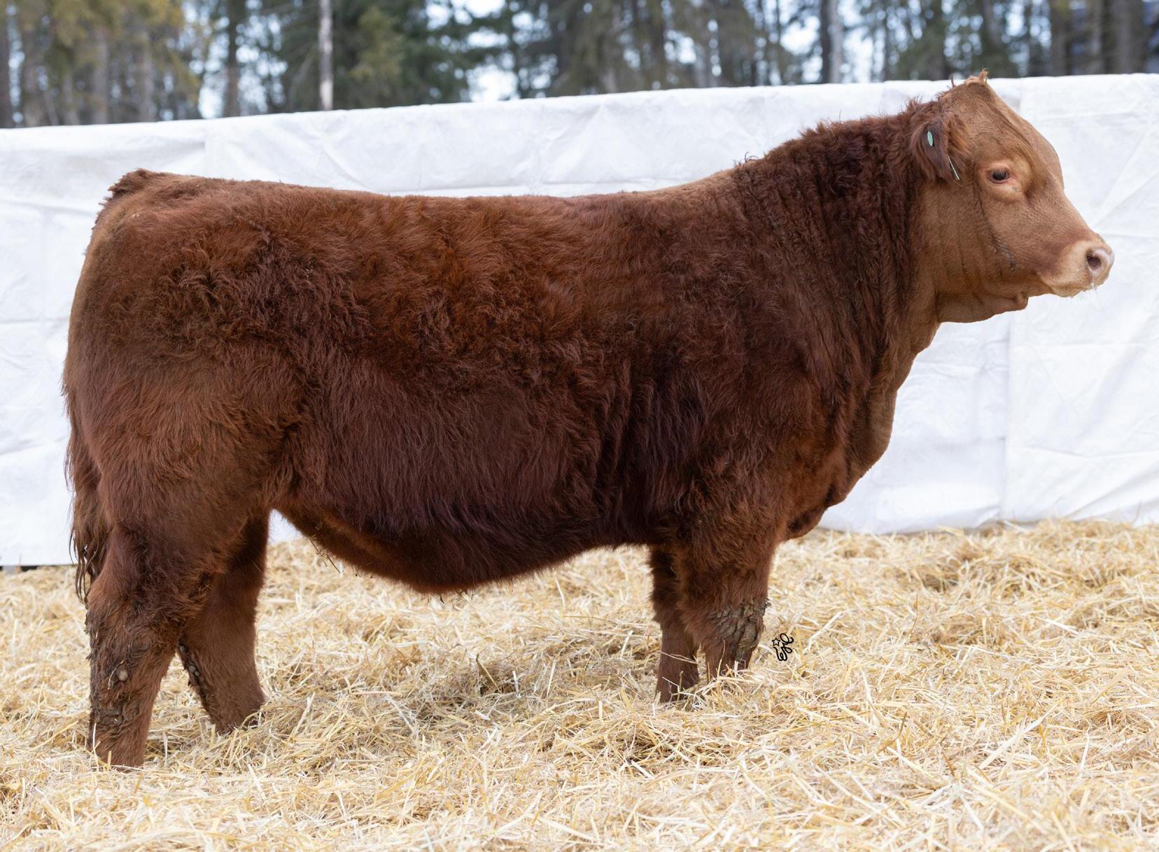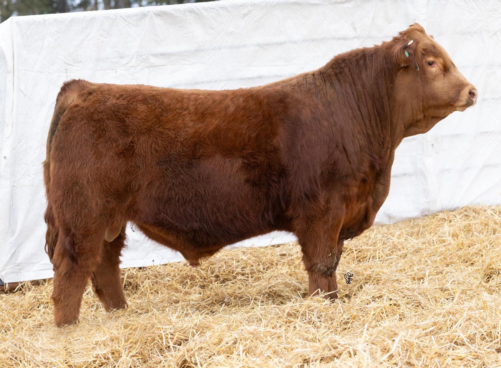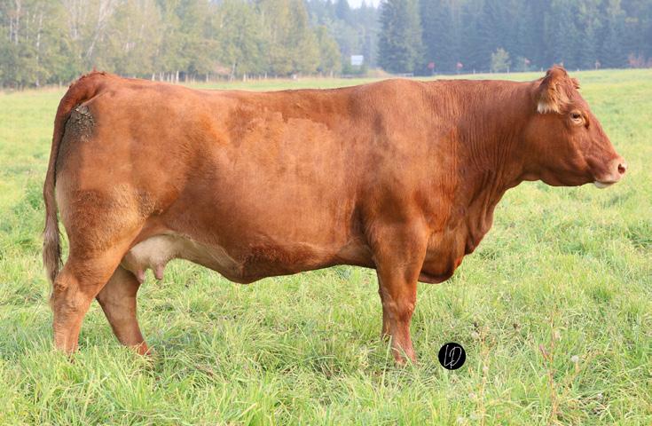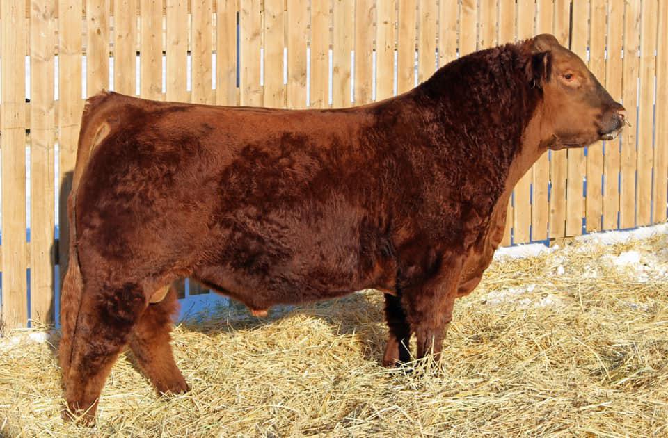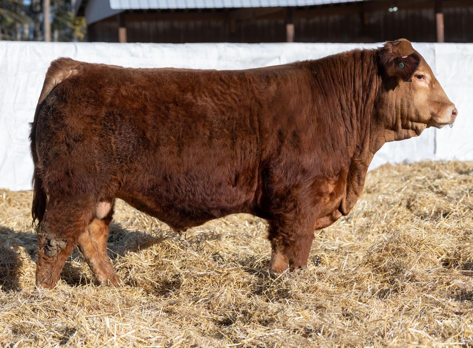 Another one of these cherry red Long Beach sons out of a big bodied, beautiful brood cow. If you’re a sucker for the cherry ones like me, this guy will certainly catch your eye. The maternal strength in this bull shines through, not only in his numbers with a milk EPD in the top 15% of the breed, but with two brothers working for Randy Saugstad and Doug Schunter. Most recently his maternal sister was sold to Payne Livestock of Lloydminster, SK in the Night Shift Sale for $14000.