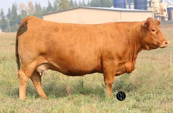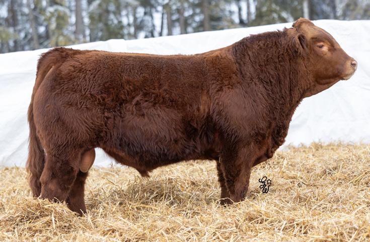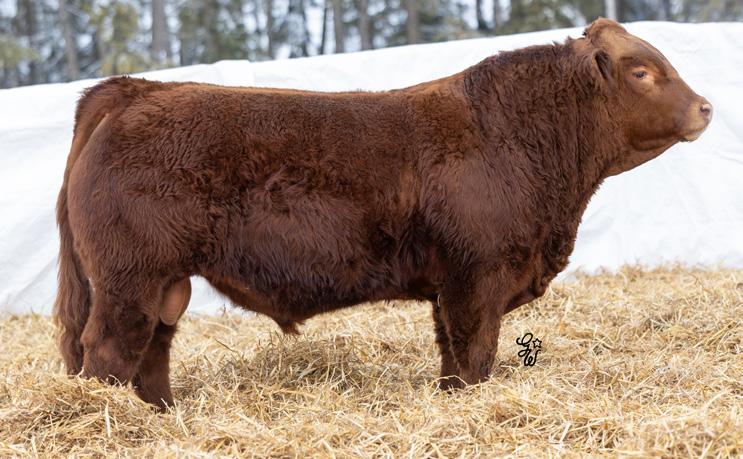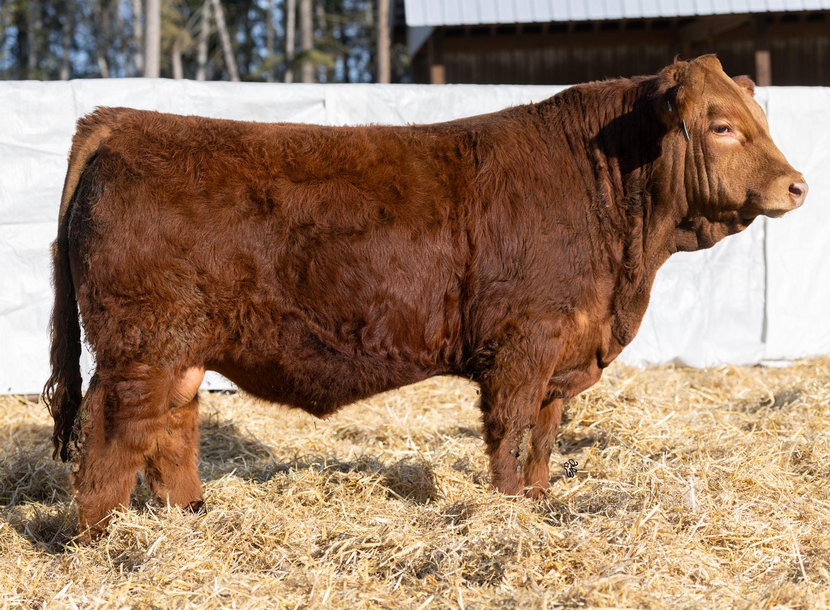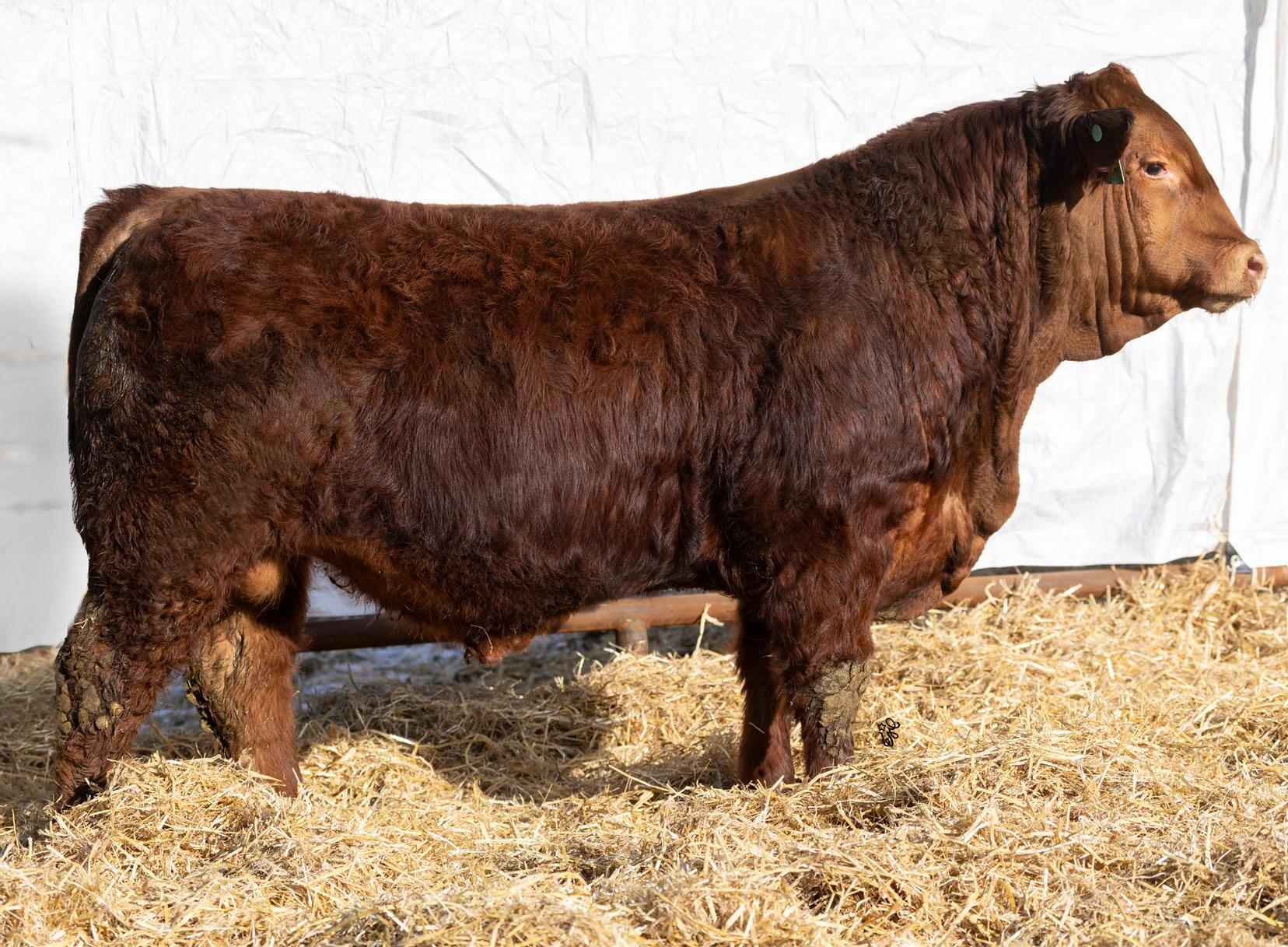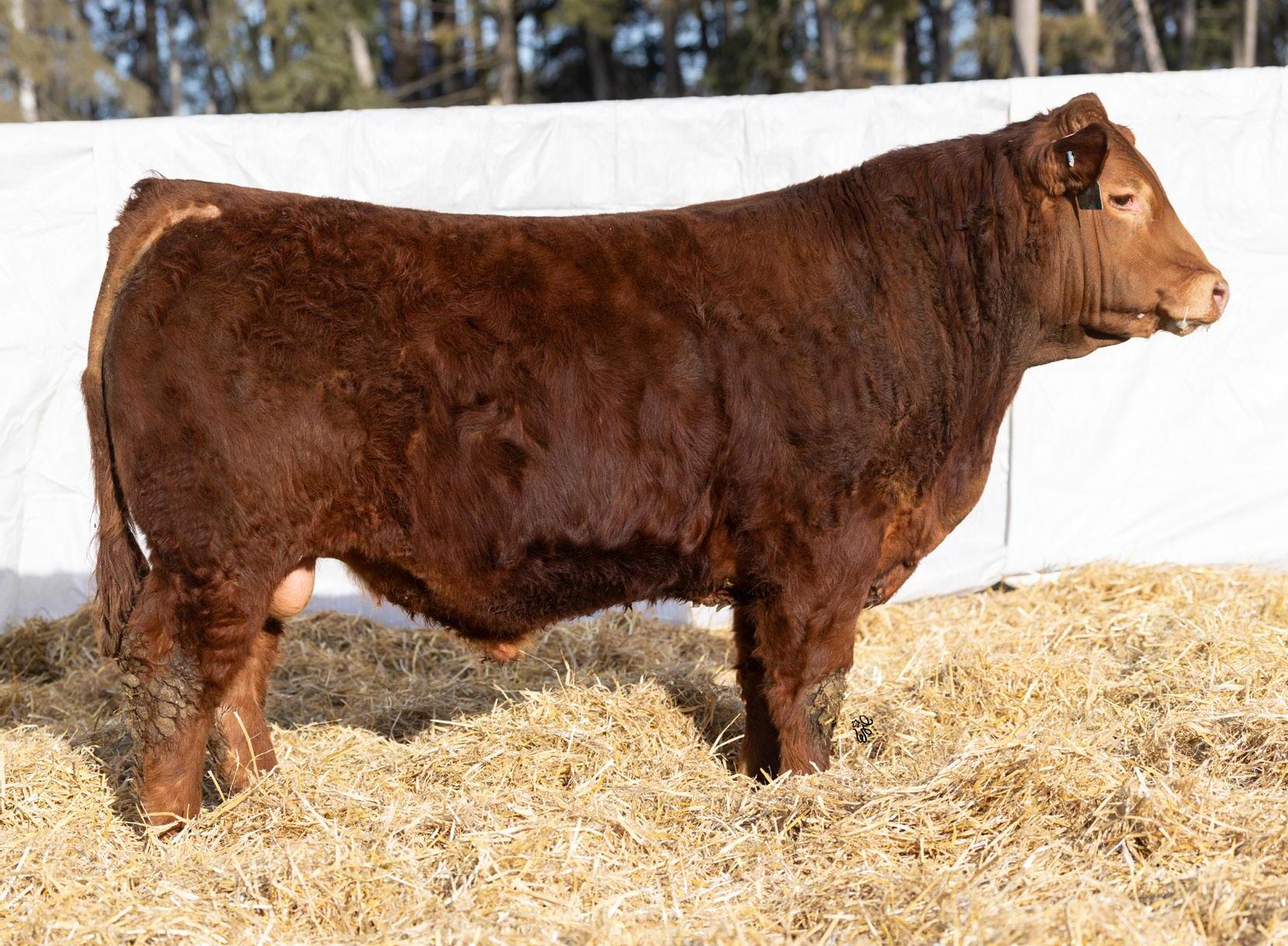 Another one of these cherry red Long Beach sons out of a big bodied, beautiful brood cow. If you’re a sucker for the cherry ones like me, this guy will certainly catch your eye. The maternal strength in this bull shines through, not only in his numbers with a milk EPD in the top 15% of the breed, but with two brothers working for Randy Saugstad and Doug Schunter. Most recently his maternal sister was sold to Payne Livestock of Lloydminster, SK in the Night Shift Sale for $14000.