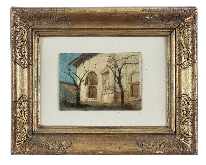 Olio su tela applicata a cartone. cm 49x70. Firma, data e titolo ad acquerello sul verso