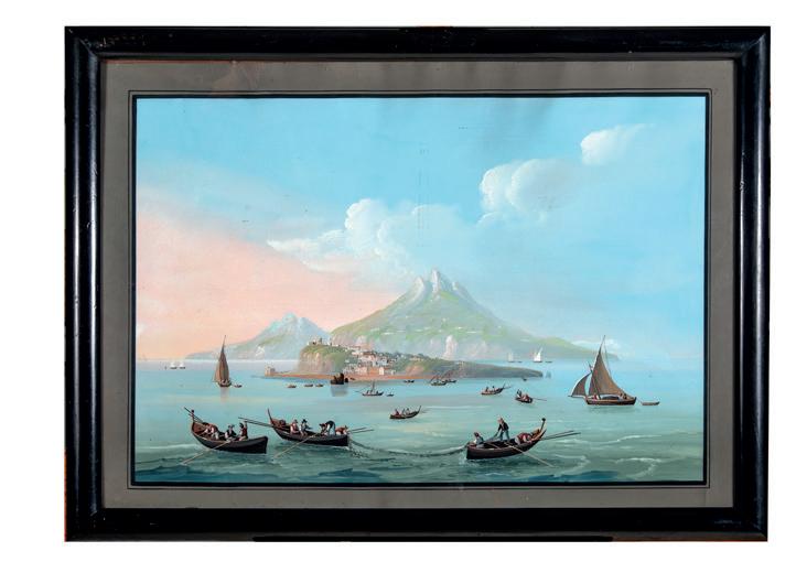 iconiche vedute della costiera e delle isole flegree due raffiguranti il Golfo di Sorrento e una le isole di Ischia e Procida con le numerose barche intente alla pesca nello specchio di mare. (3)