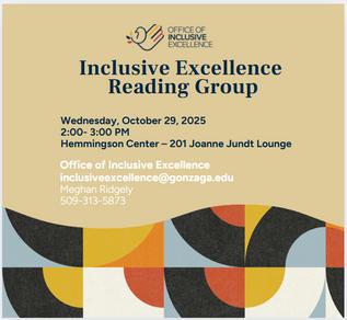 Throughout his career, Dr. Wright has been dedicated to “bridging theory and practice.” One of his most meaningful contributions is coining the term chronic codeswitching to describe how Black/White multiracial students navigate complex intersectional experiences in higher education. He shared that Gonzaga’s commitment to social justice and developing the whole person “aligns perfectly with my work and vision.” He is especially excited to host the office’s monthly reading group, with the next session on November 24. He also encourages everyone to look forward to the office’s signature event, the Inclusive Excellence Symposium in Spring 2026.