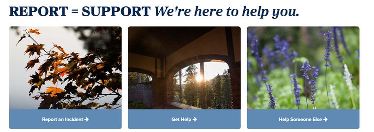 once directed to the “Title IX” webpage, click on the “Report an Incident” tile under the “REPORT = SUPPORT” header. On the “Report an Incident” page, click the “Report Online” button which will route you to the online reporting form. You can also scan the QR code below to be routed directly to the form.