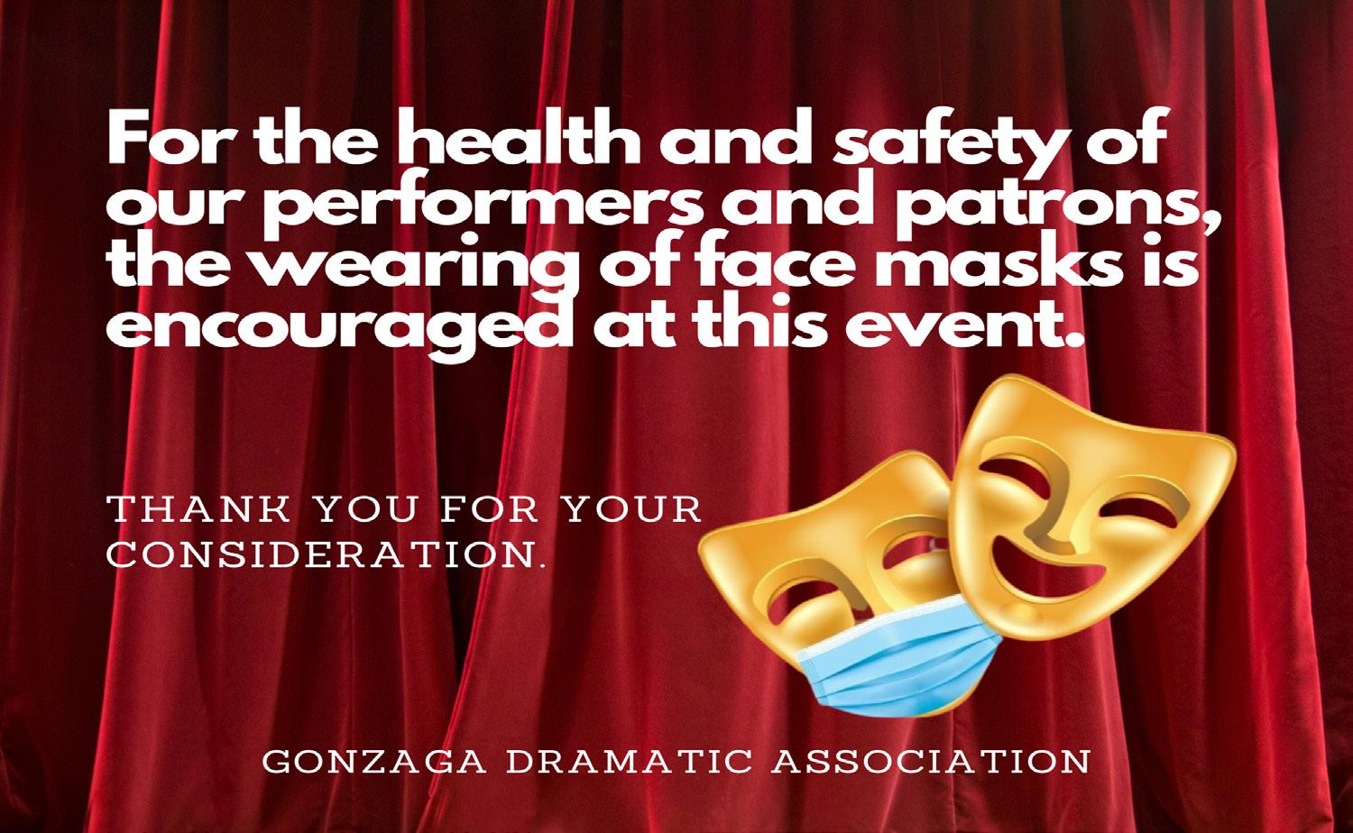 Fr. Joe Lingan, Fr. Harry Geib, Steve Neill, Tom Every, Jim Kilroy, Kara Schwabel, Dale Johnson and the Business Office, Robert Churchwell, Devon Leary, Mark Emory, Cisco Gonzalez and the Maintenance Staff, Priscilla Flynn, Mary Clare Glover, Conrad Singh, Renee Spencer, Jonathan Spencer, Jenni Dunn, Andrew Wood, Ciaran Freeman, Danielle Flood, the Gonzaga English Department, Kathleen Clark, Dr. Anna Curtin, Palm Facilities Services, Sage Dining Services, Campus Security, Joe Reyda, Kristen Allen and the Gonzaga Mothers’ Club, Mike Dunn and the Gonzaga Fathers’ Club, Britney Pugh, Sarah Frances Hope Williams and the Levine School of Music, Kevin de Souza, Mary Griffith, Denise Aitchison, Ticia Berg, Alex Limarzi, Kai Jones, Locke Sullivan, Jack Scandling, Andy Wing, Mark Gahan and the Port Tobacco Players, Mark Constable at Barbizon, Paul Gillis and Stone Photography and all of the ushers who help us to find our seats and remind us politely not to bring food into the theater.