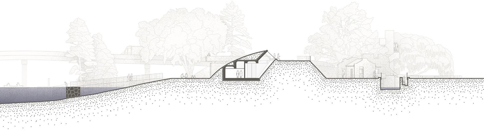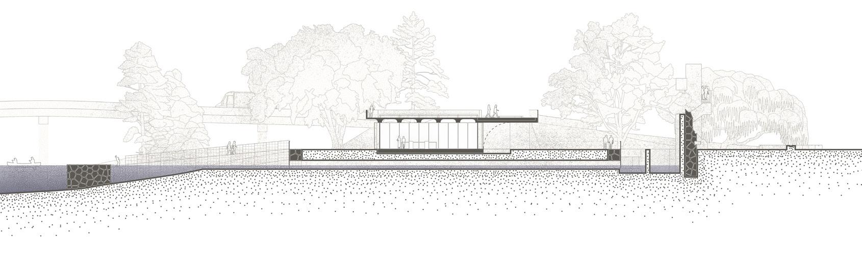 The project digs into the earth in strategic places to enable new connections between the river and the city (b) Practices that integrate historical, social and natural heritage will be the activators of these stone interstices (c)