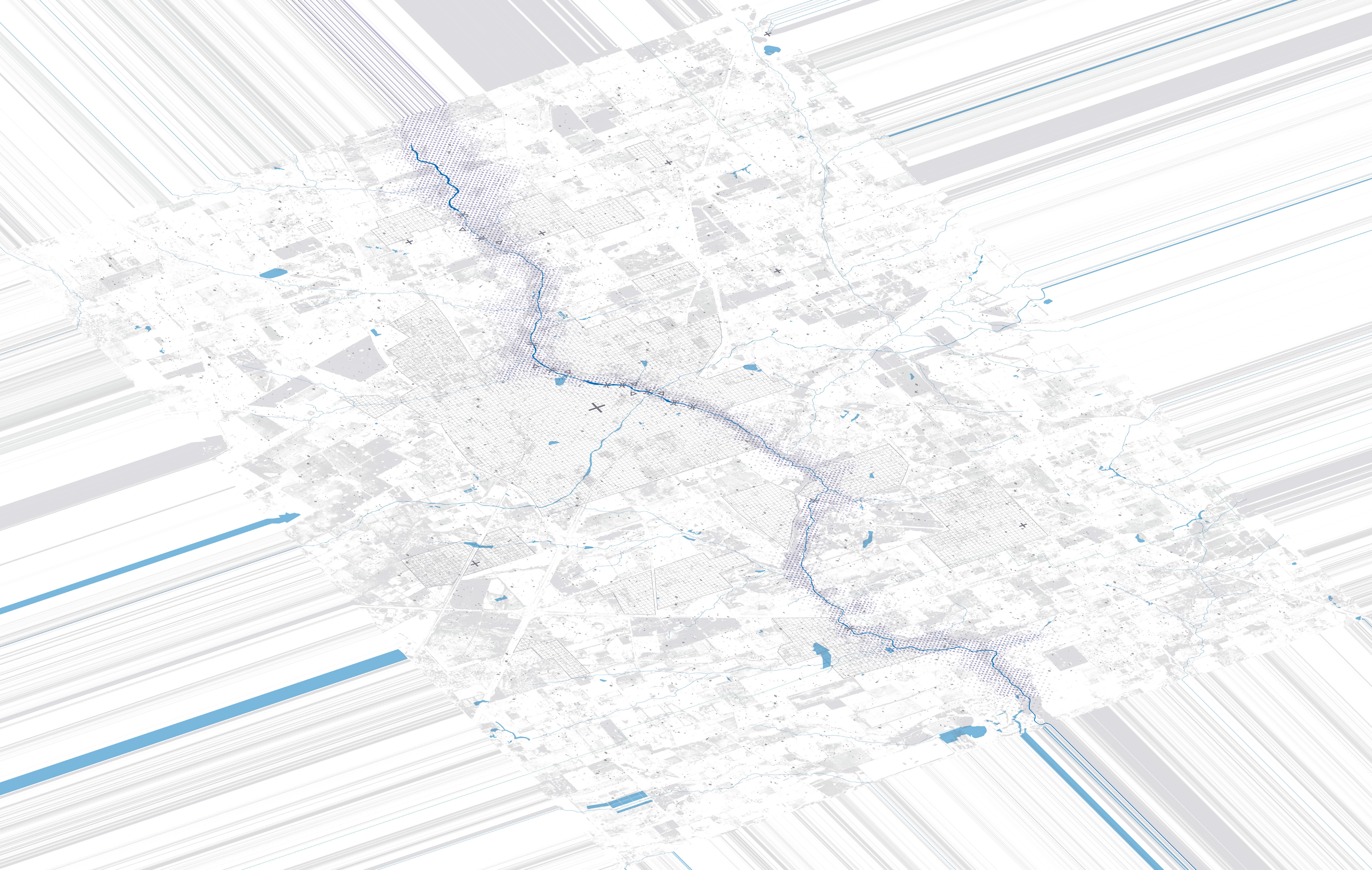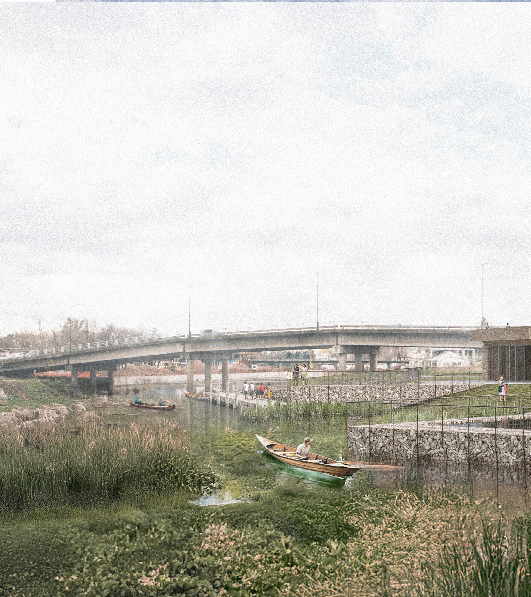 The Luján River basin is an ecosystem in motion. Its embankments are protection against possible floods, but also a barrier for its inhabitants (a) Madrigal is interwoven with the network of river infrastructures to return this valuable space to the surrounding communities (d)