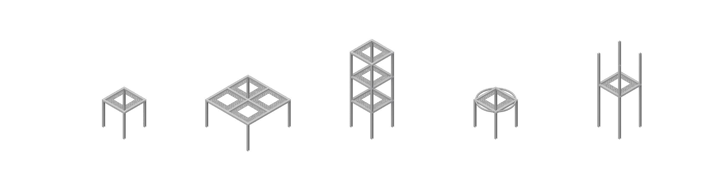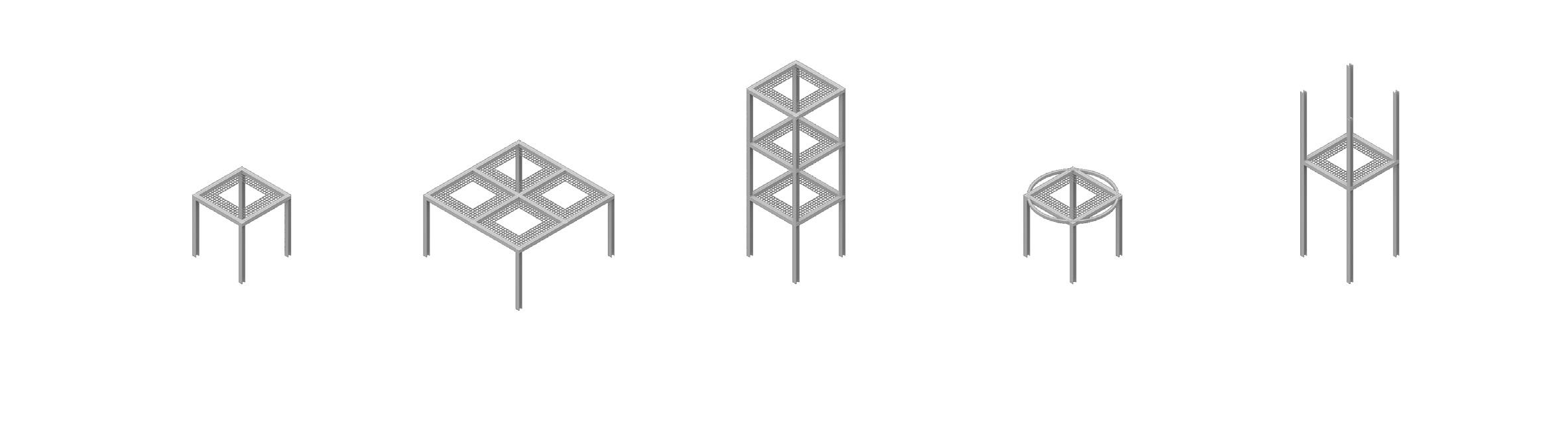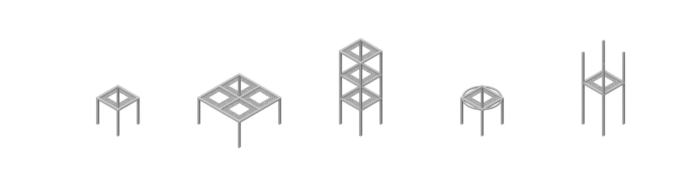 vertical displacement lifts columns + grid + rails + walkways modular system