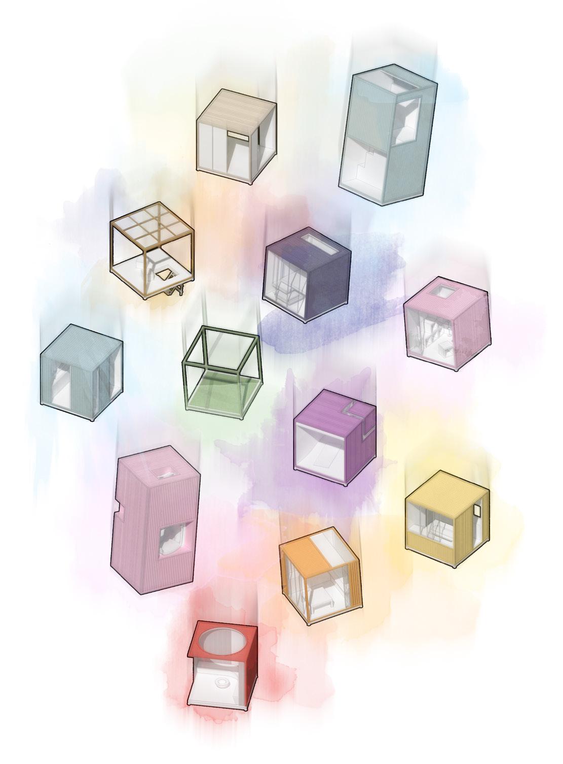 We think of the whole as the universe of inhabitation; countless phenomena occur within it. Each of them forms a micro-universe, whose nature is to stimulate our senses. By immersing themselves in its spaces, the inhabitants seek to rediscover themselves, awakening sensations through their experimental atmospheres.