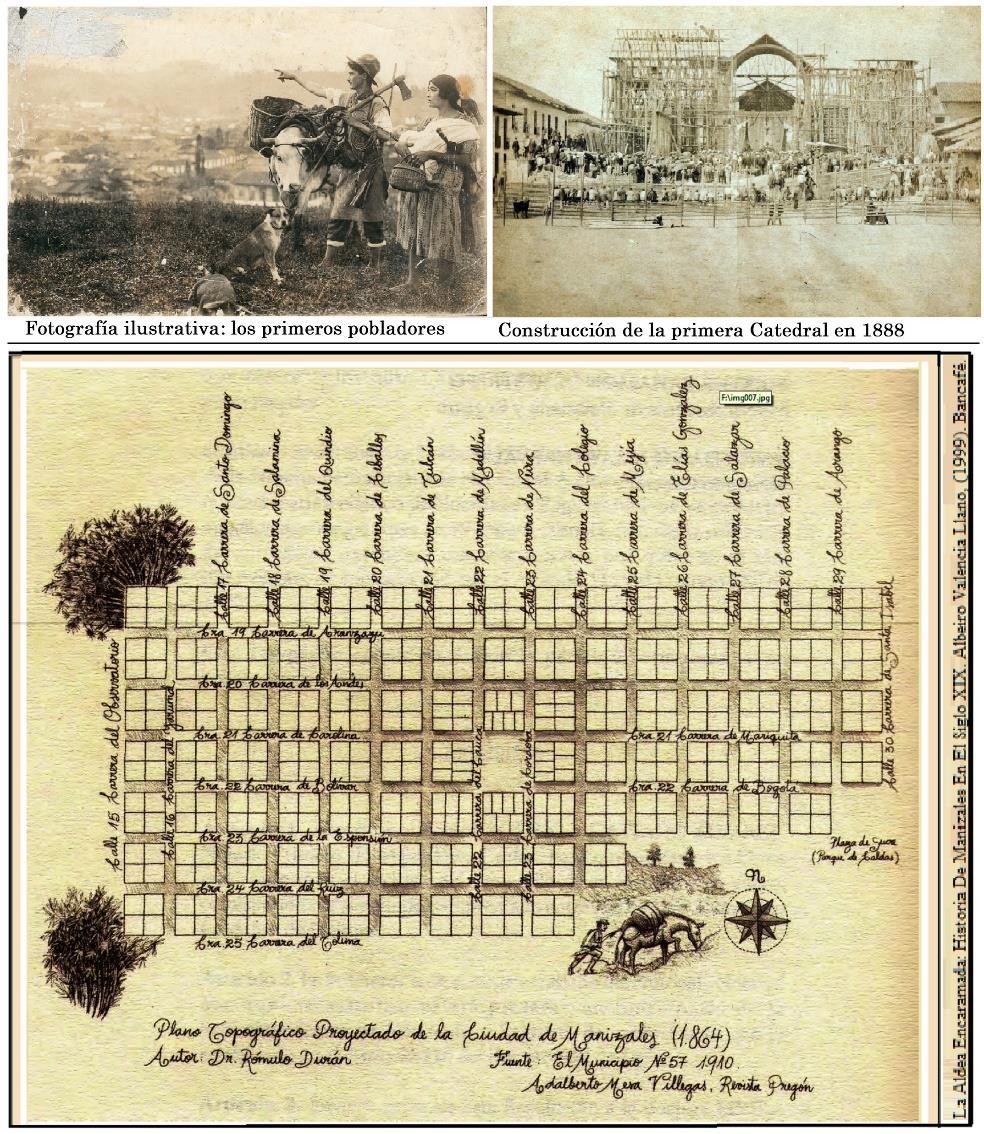 Construcción primera Catedral en 1888 - y Plano de Manizales en 1864