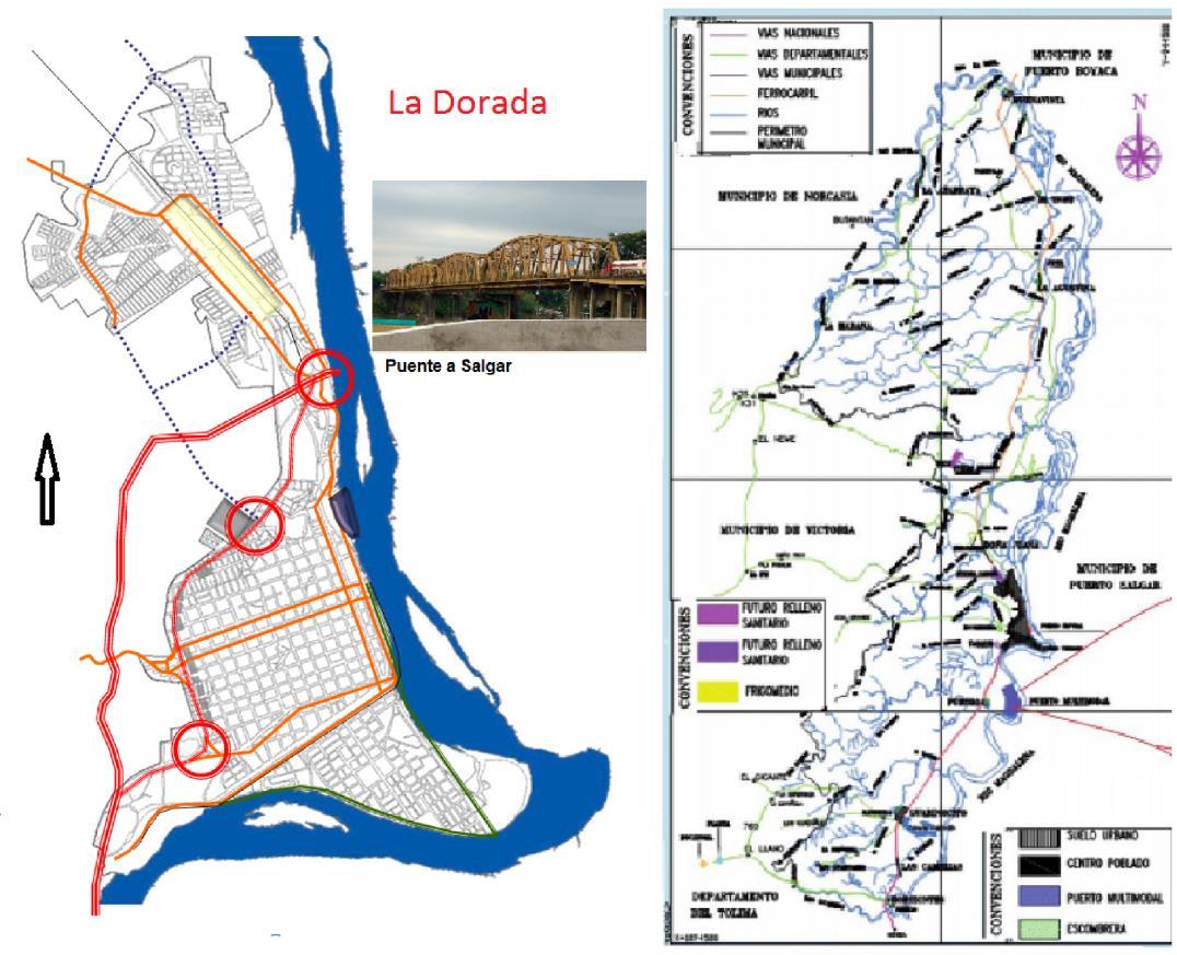 La Dorada, y Ubicación del puerto de Gibraltar, en Purnio. Findeter y Fundación Igala de la U. de Caldas.